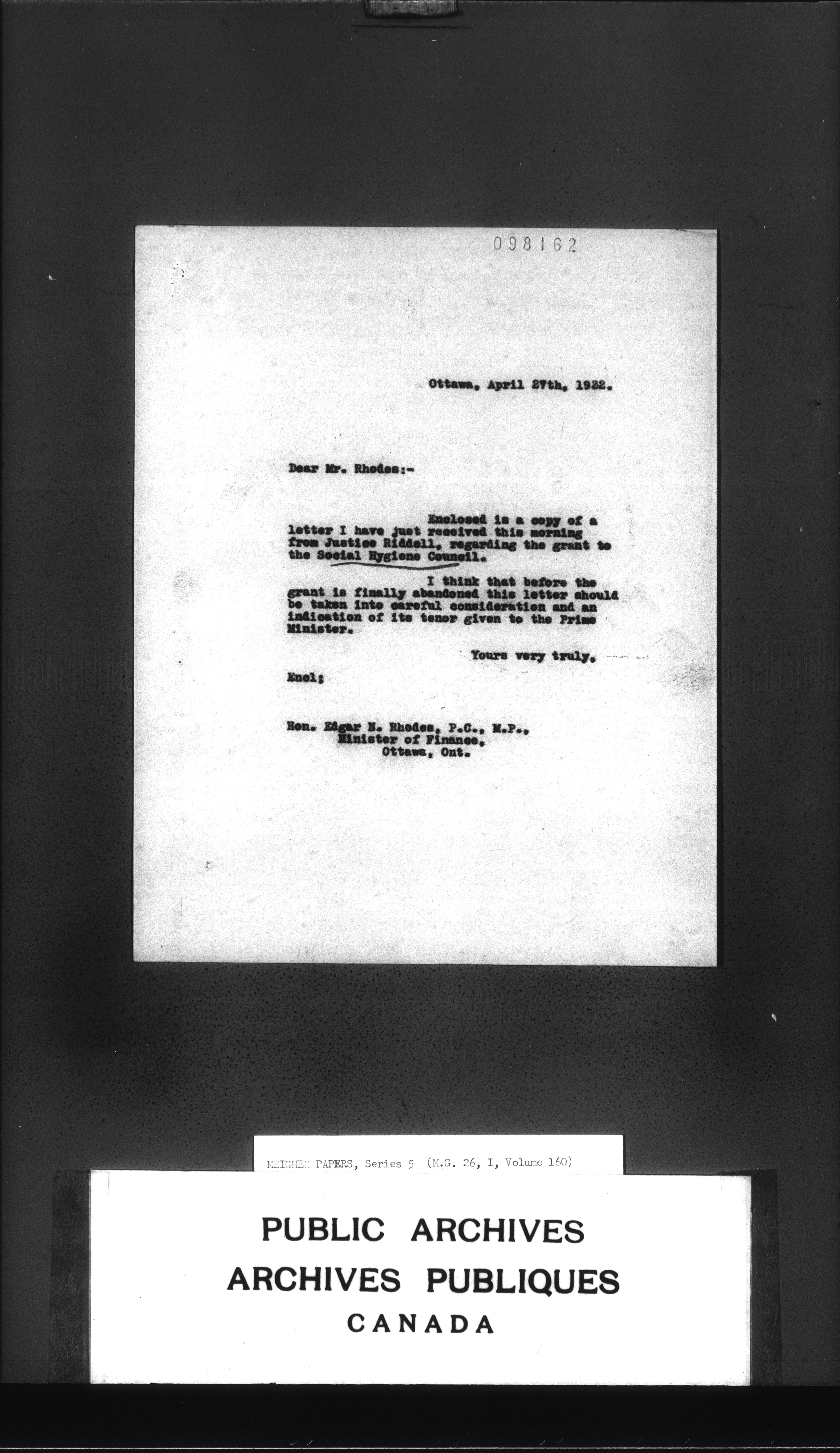 Arthur Meighen : Series 5, correspondence - 3558