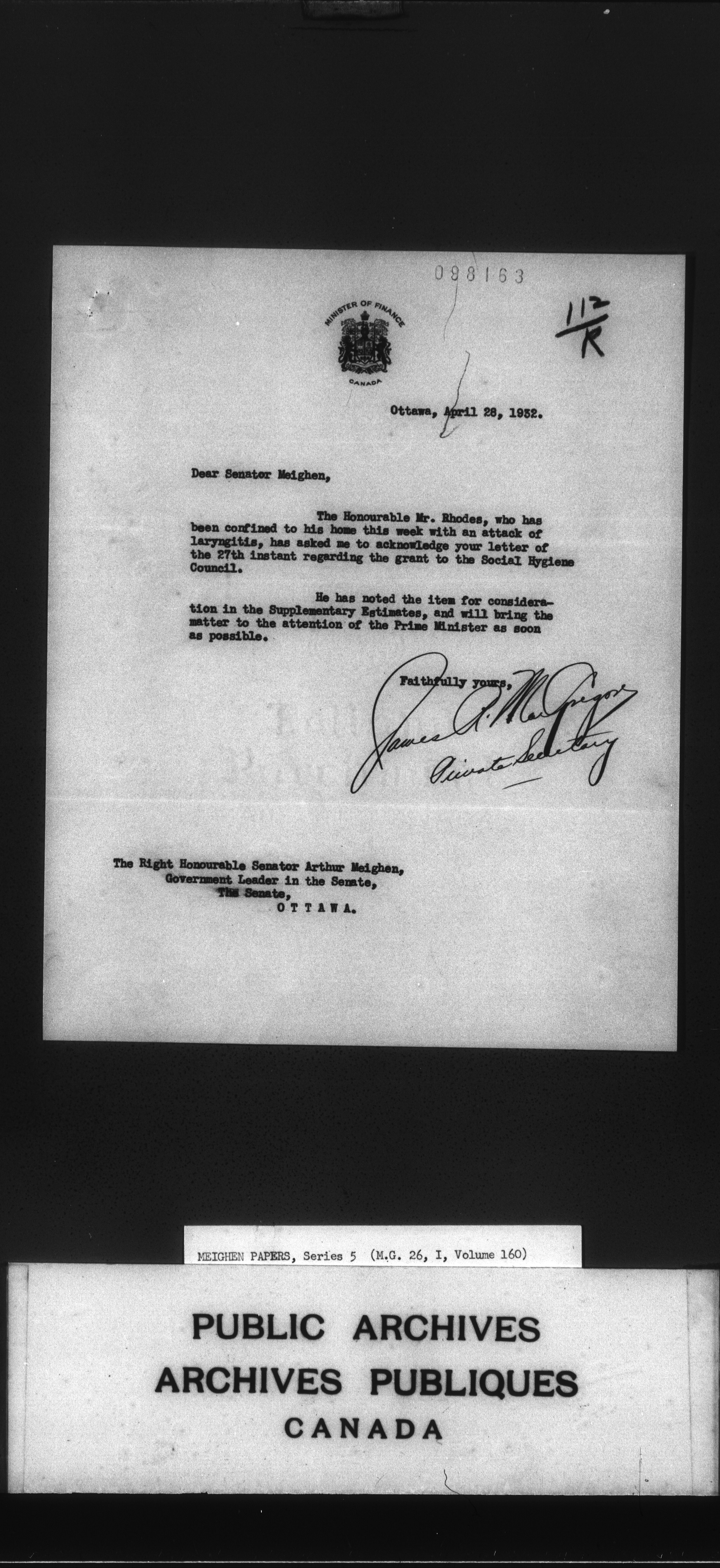 Arthur Meighen : Series 5, correspondence - 3558