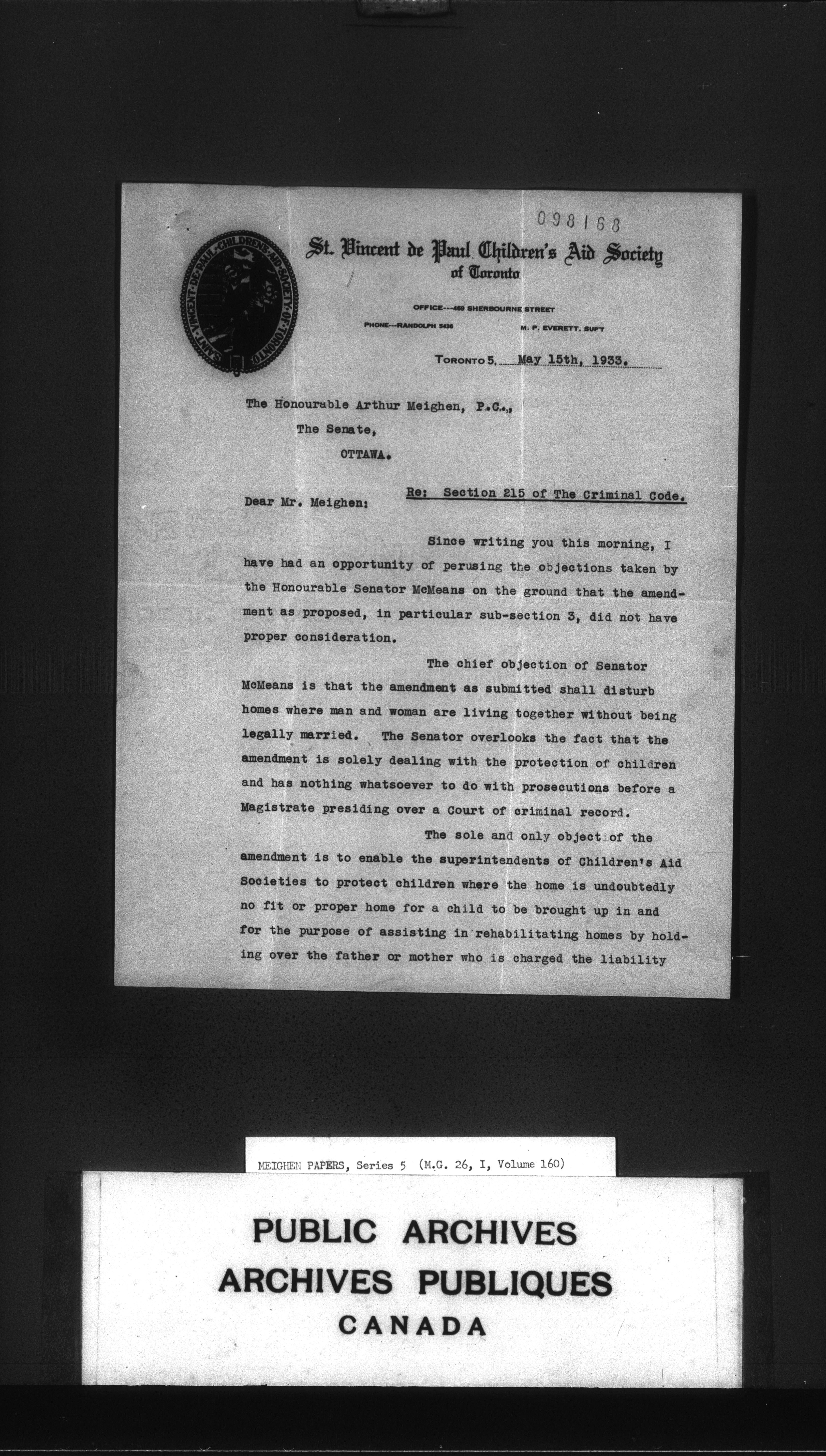 Arthur Meighen : Series 5, correspondence - 3558