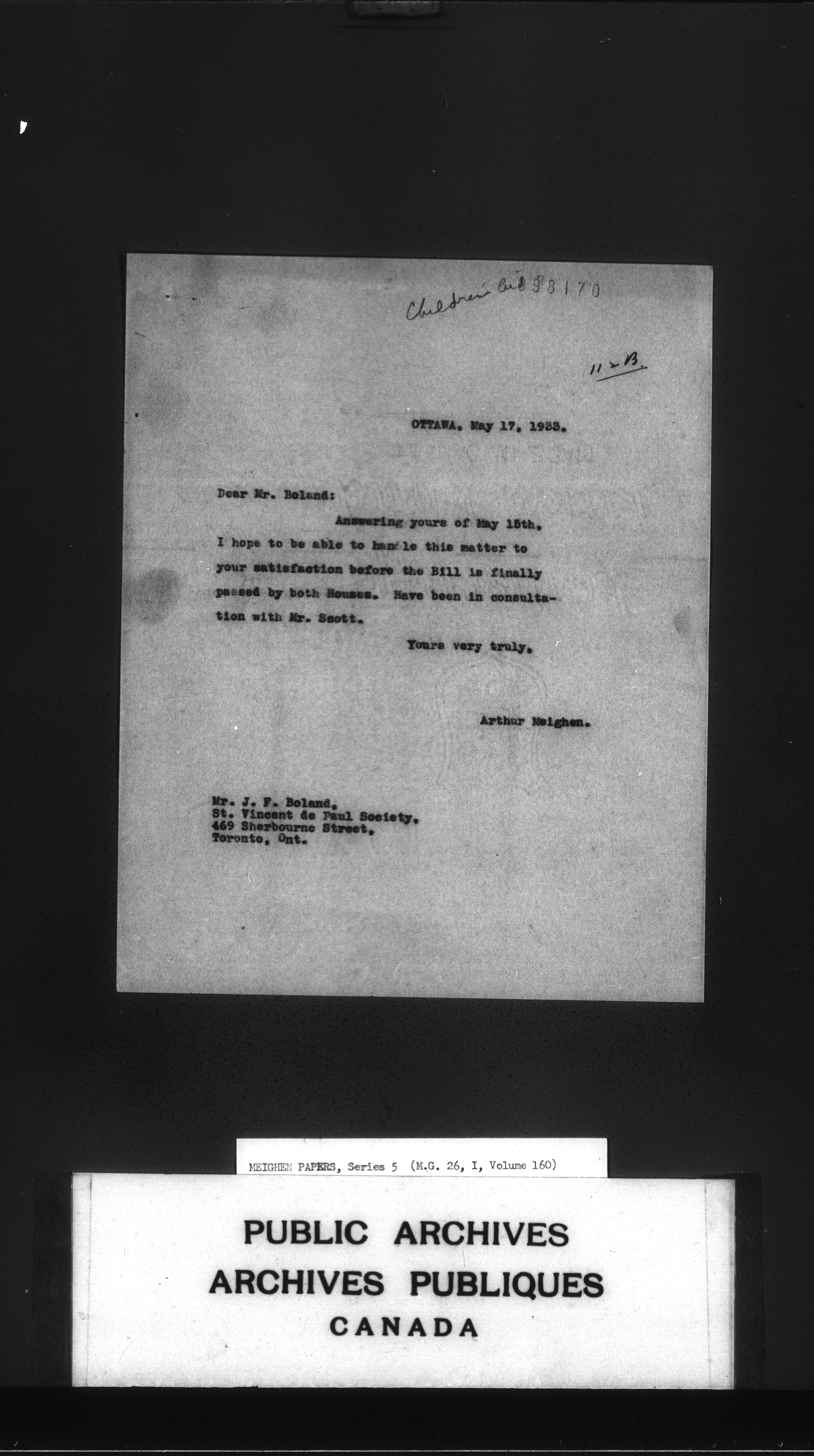 Arthur Meighen : Series 5, correspondence - 3558