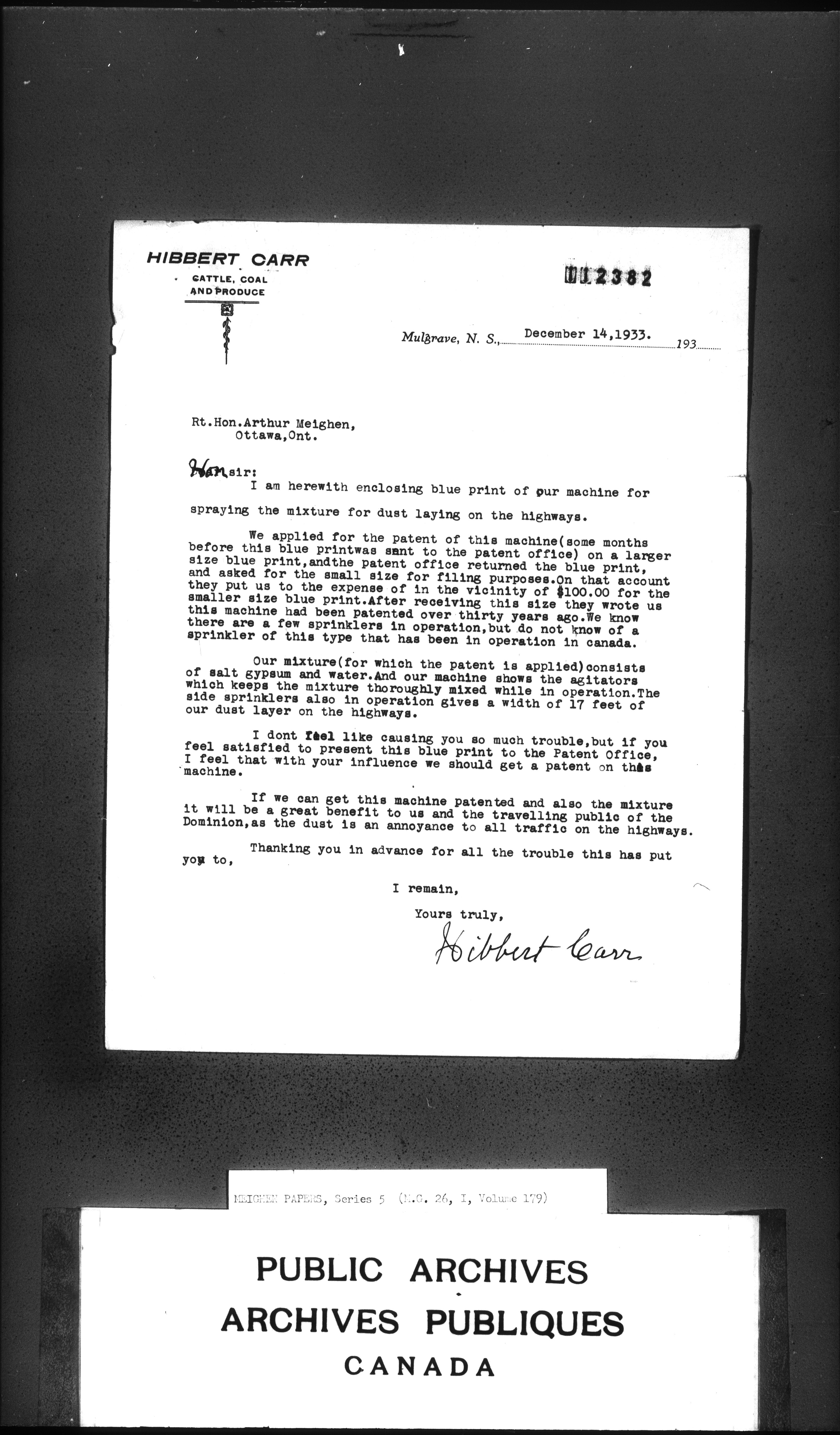 Arthur Meighen : Series 5, correspondence : C-3569