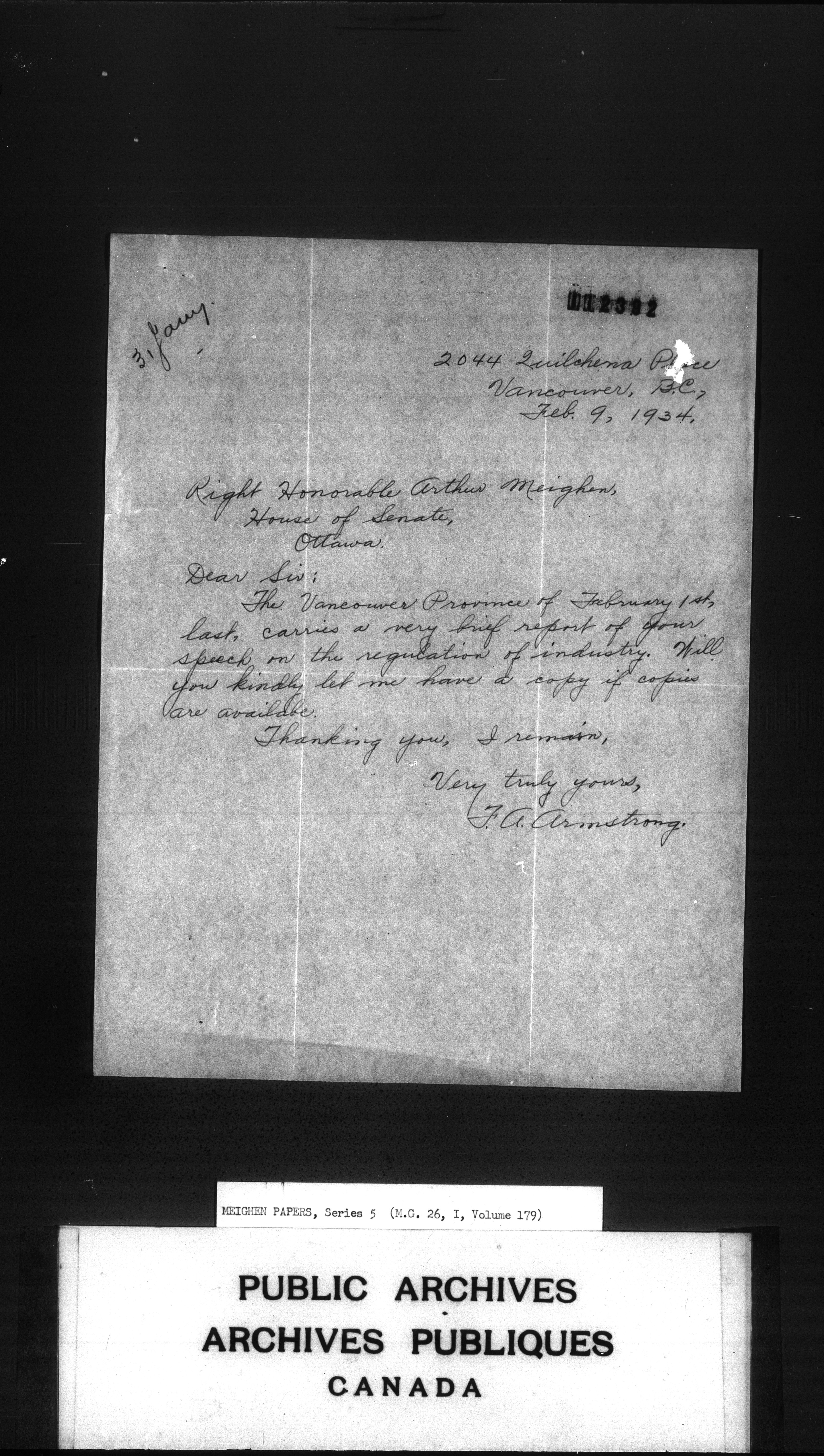 Arthur Meighen : Series 5, correspondence - 3569