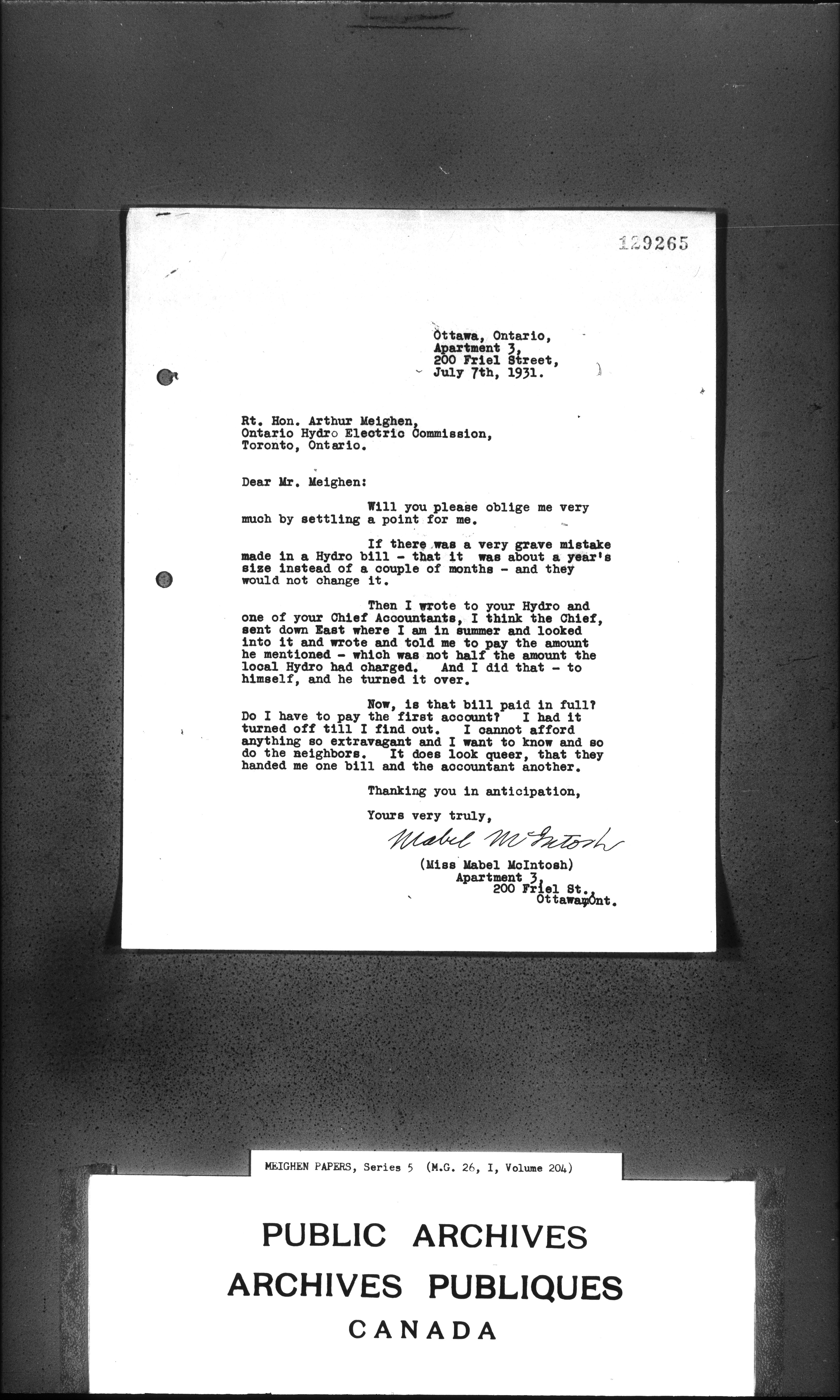 Arthur Meighen : Series 5, correspondence - 3582