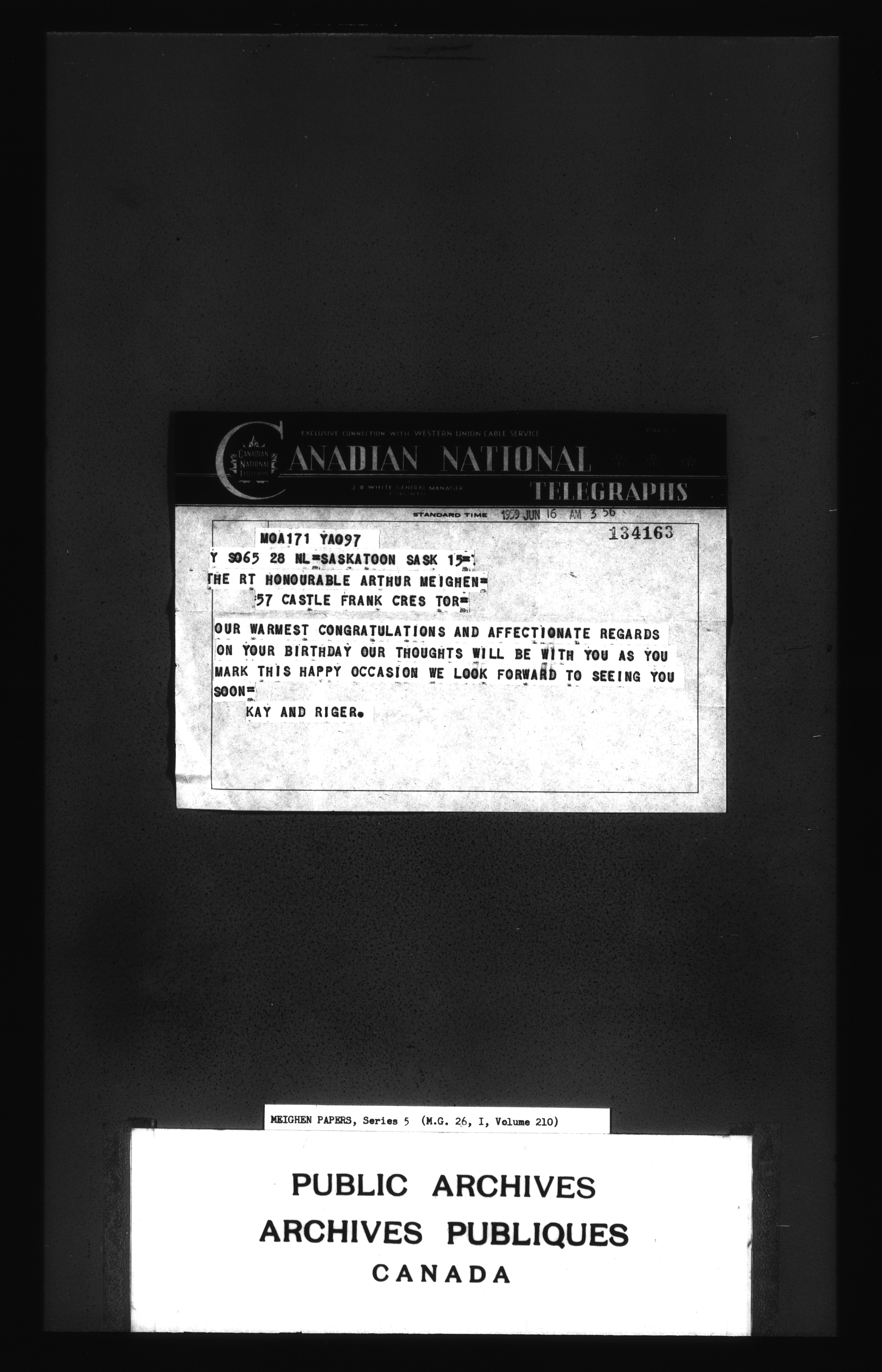 Arthur Meighen : Series 5, correspondence - 3586