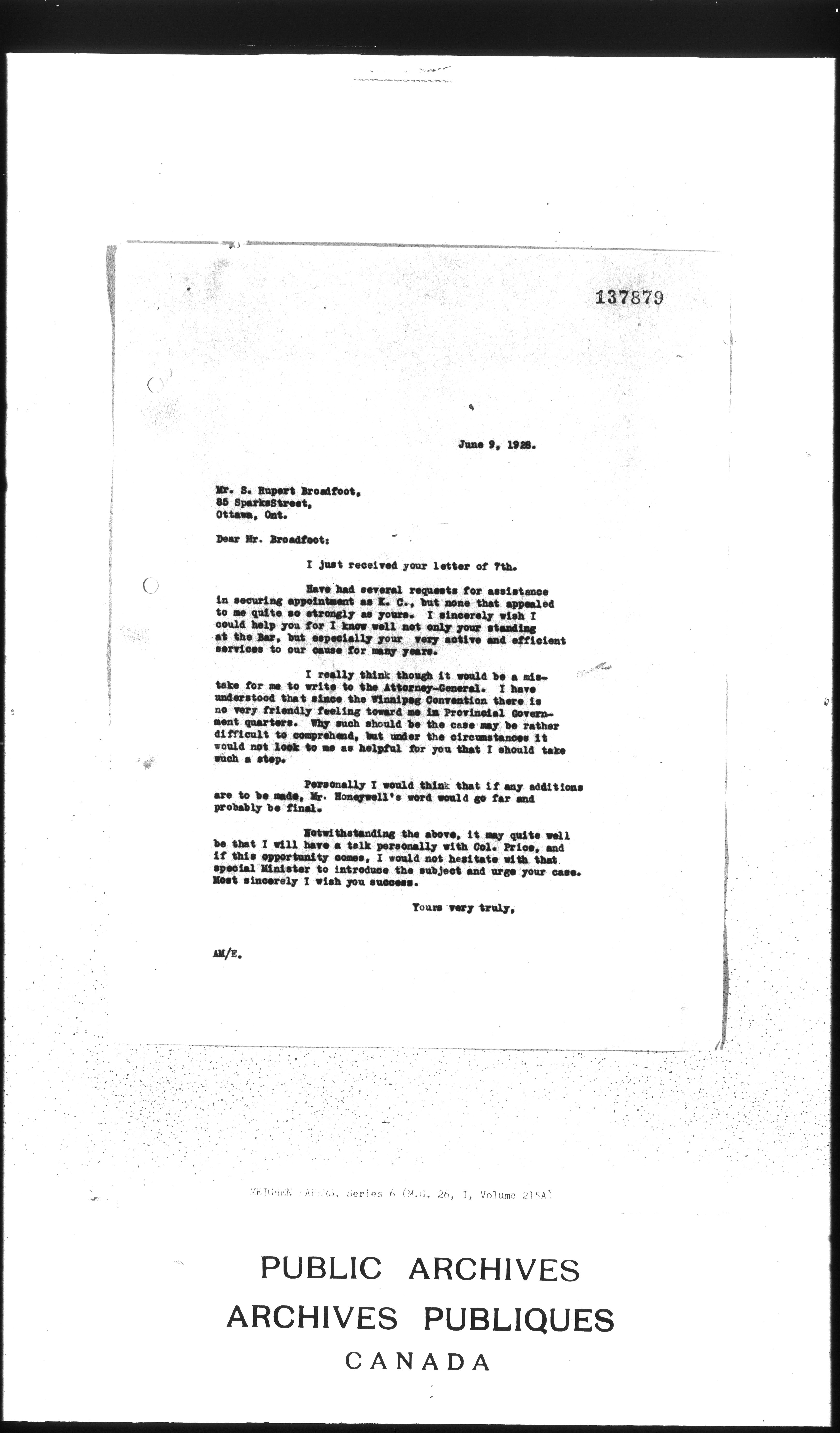 Arthur Meighen : Series 6, general correspondence : C-3589