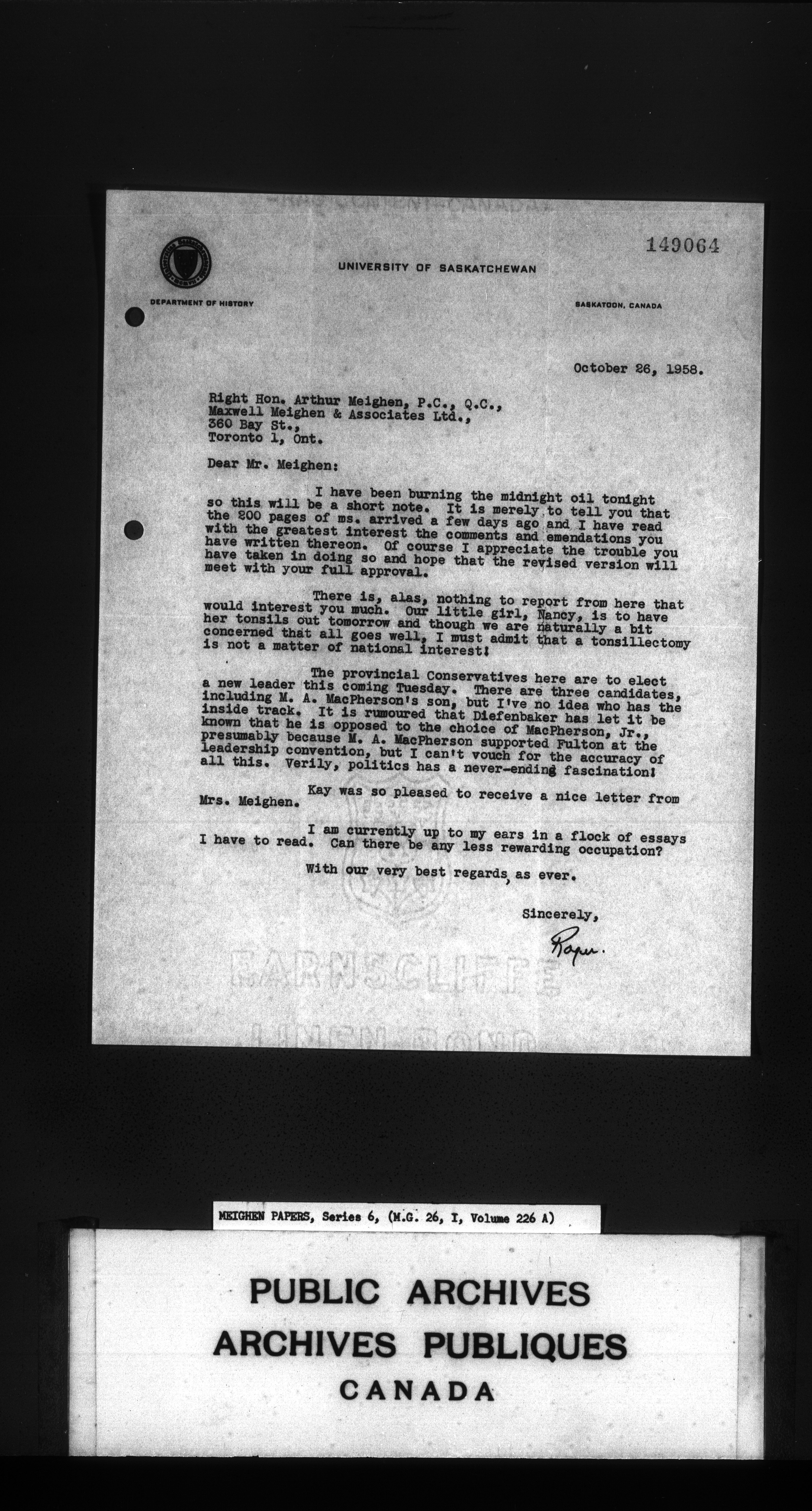 Arthur Meighen : Series 6, general correspondence - 3598