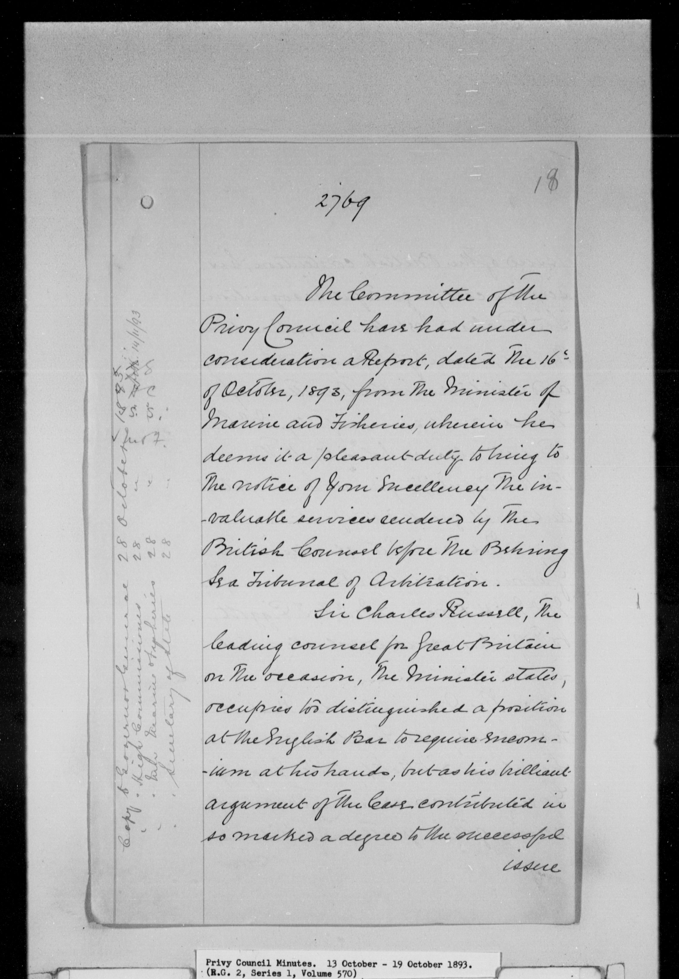 Privy Council Office, Orders in Council : Minutes, annexes and reports - 3615