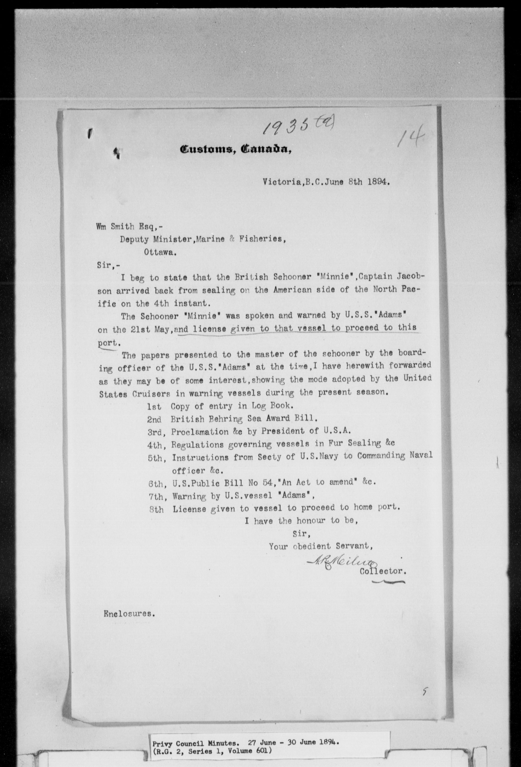 Privy Council Office, Orders in Council : Minutes, annexes and reports - 3624