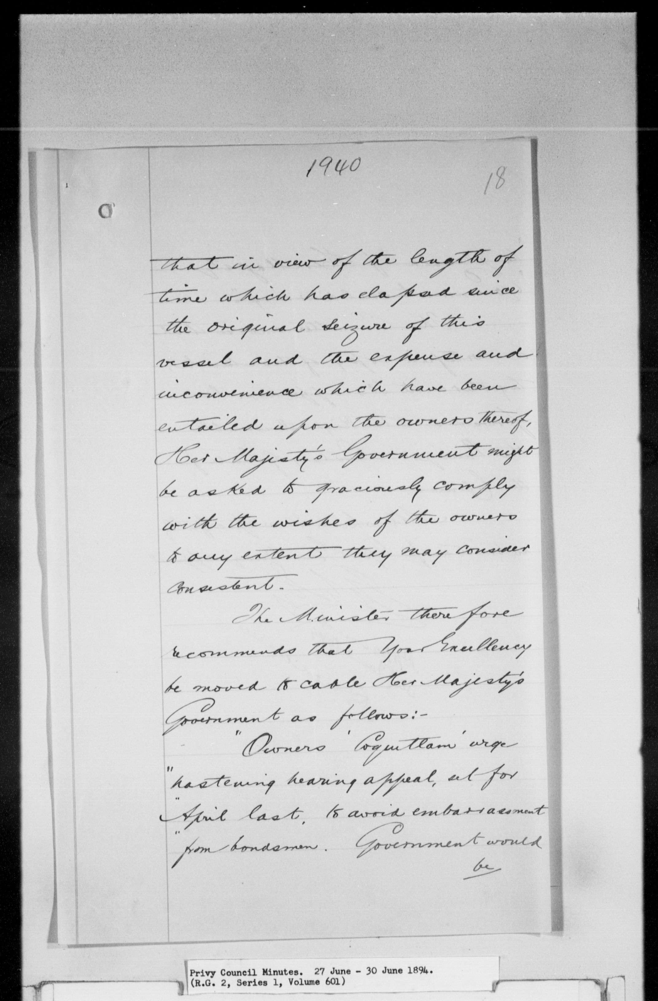 Privy Council Office, Orders in Council : Minutes, annexes and reports - 3624
