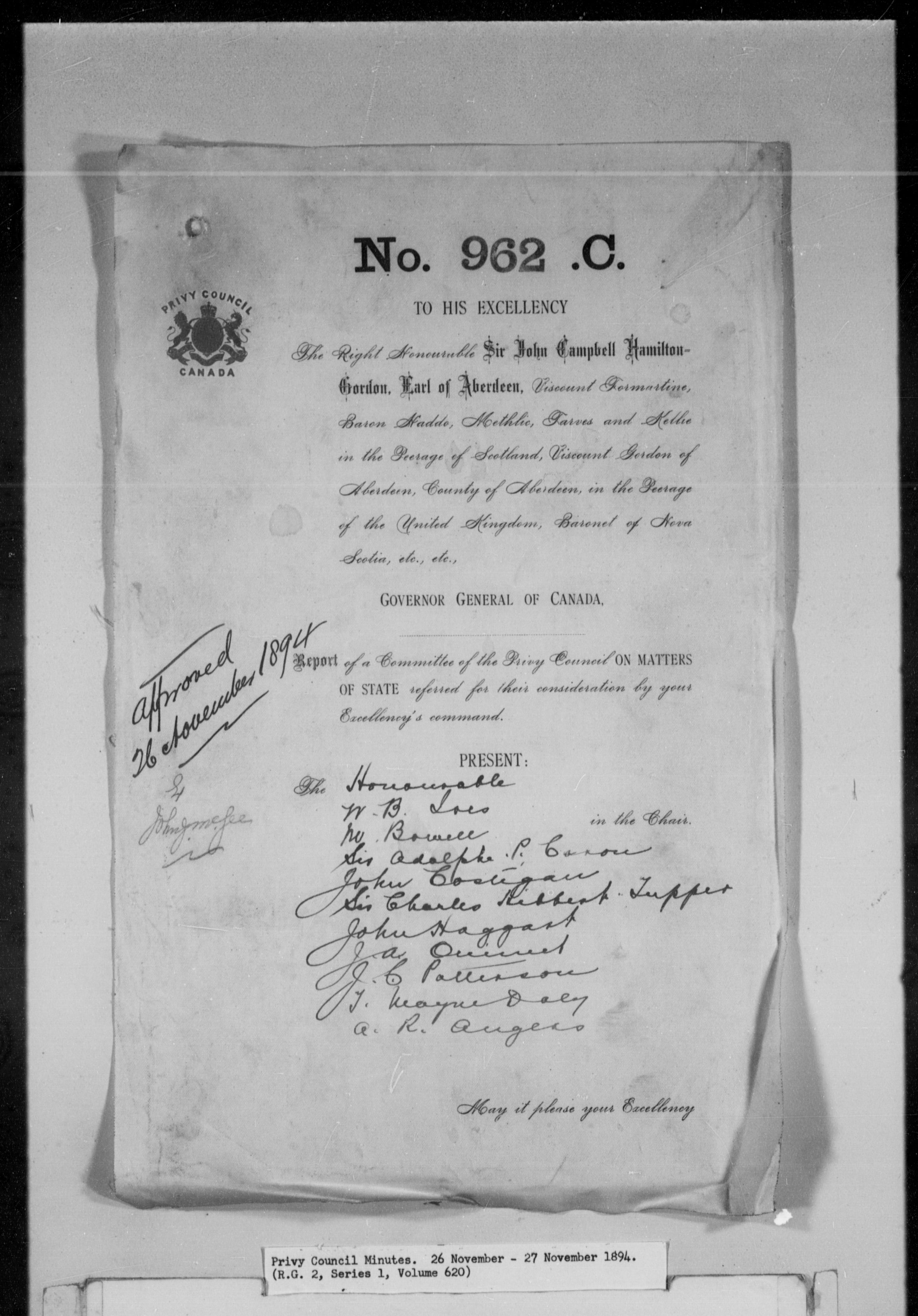 Privy Council Office, Orders in Council : Minutes, annexes and reports - 3629