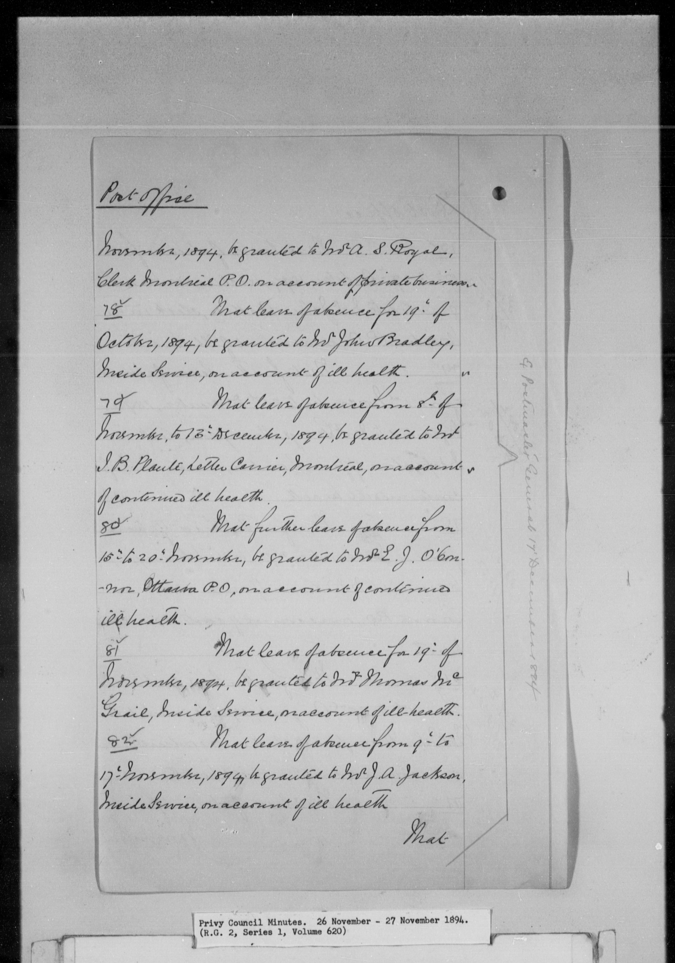 Privy Council Office, Orders in Council : Minutes, annexes and reports - 3629