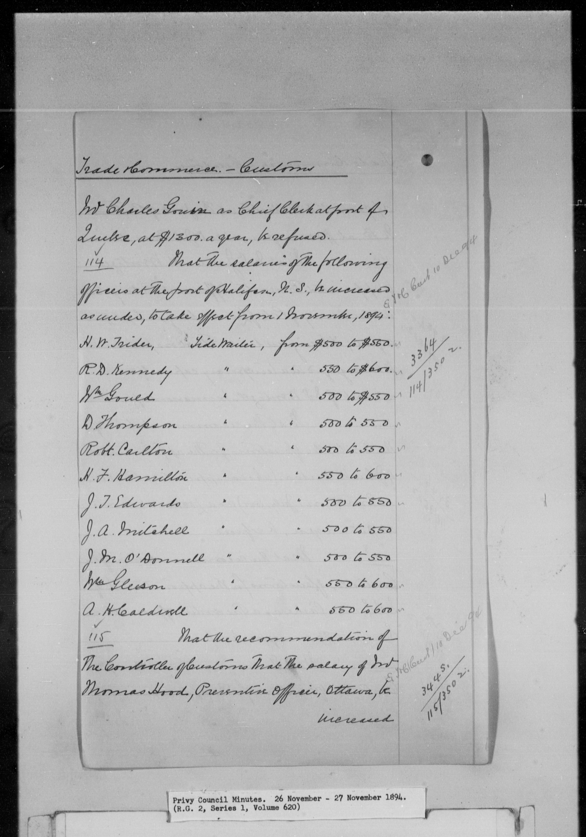 Privy Council Office, Orders in Council : Minutes, annexes and reports - 3629