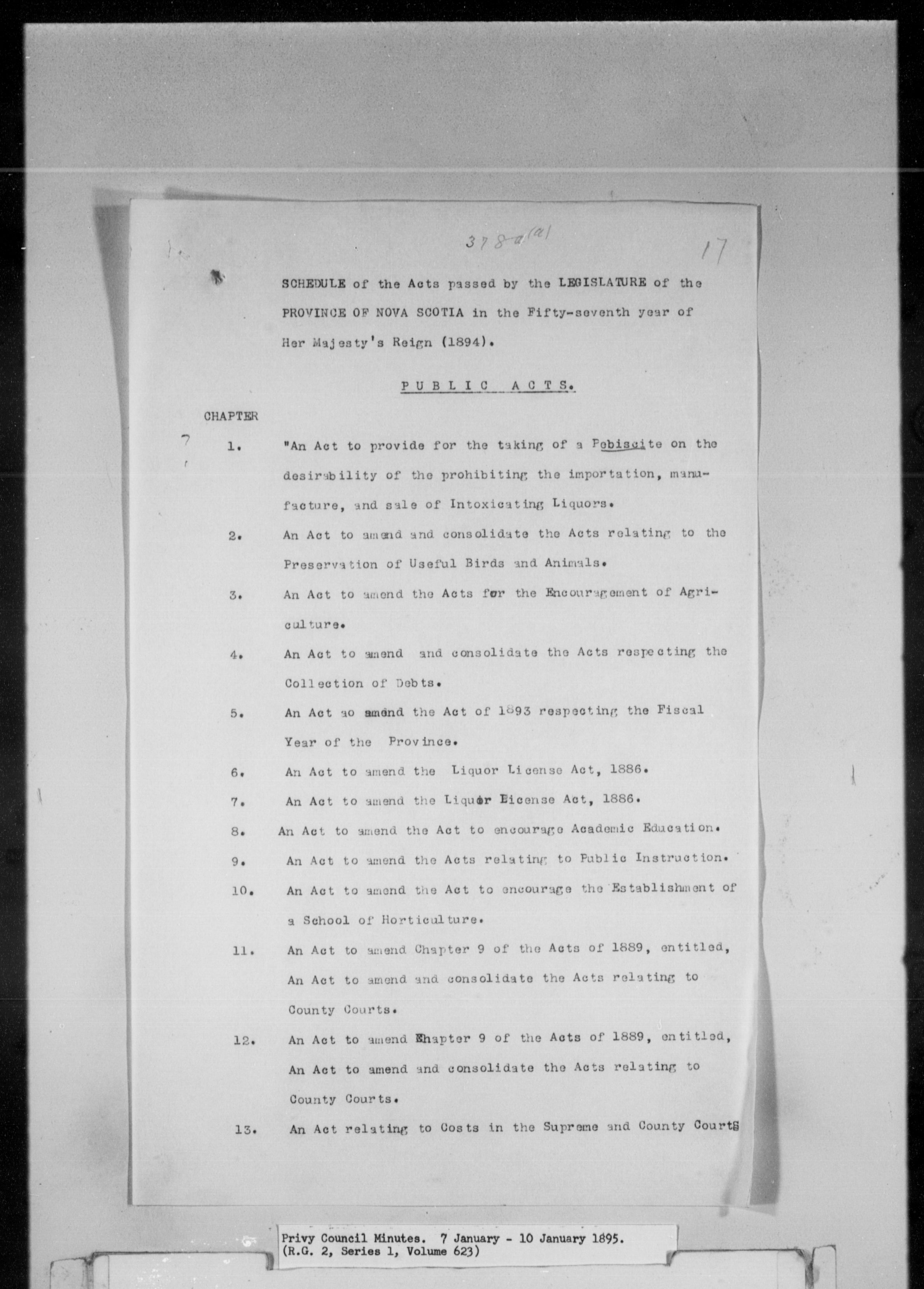 Privy Council Office, Orders in Council : Minutes, annexes and reports - 3630