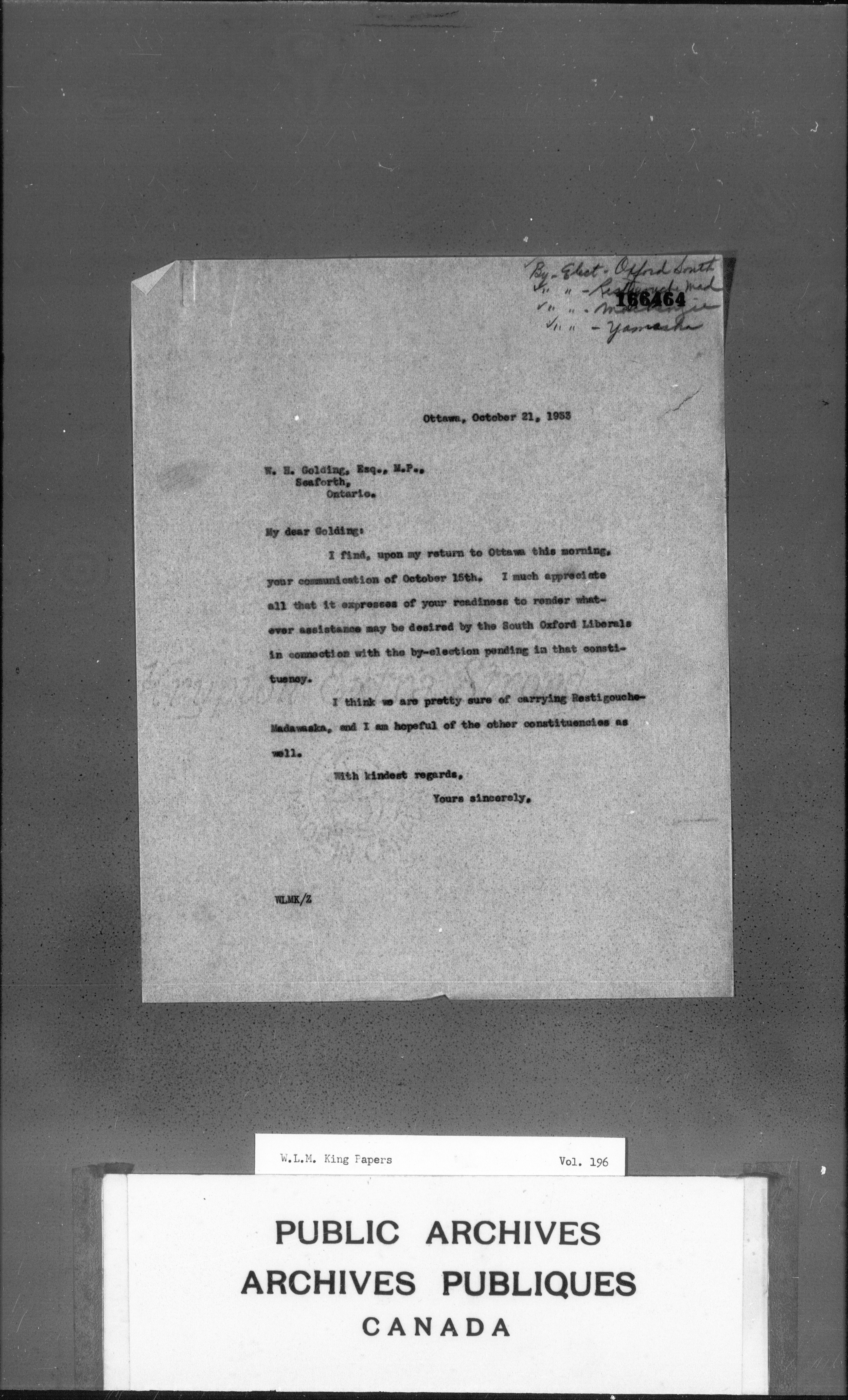 William Lyon Mackenzie King : Primary series correspondence (J1) - 3673