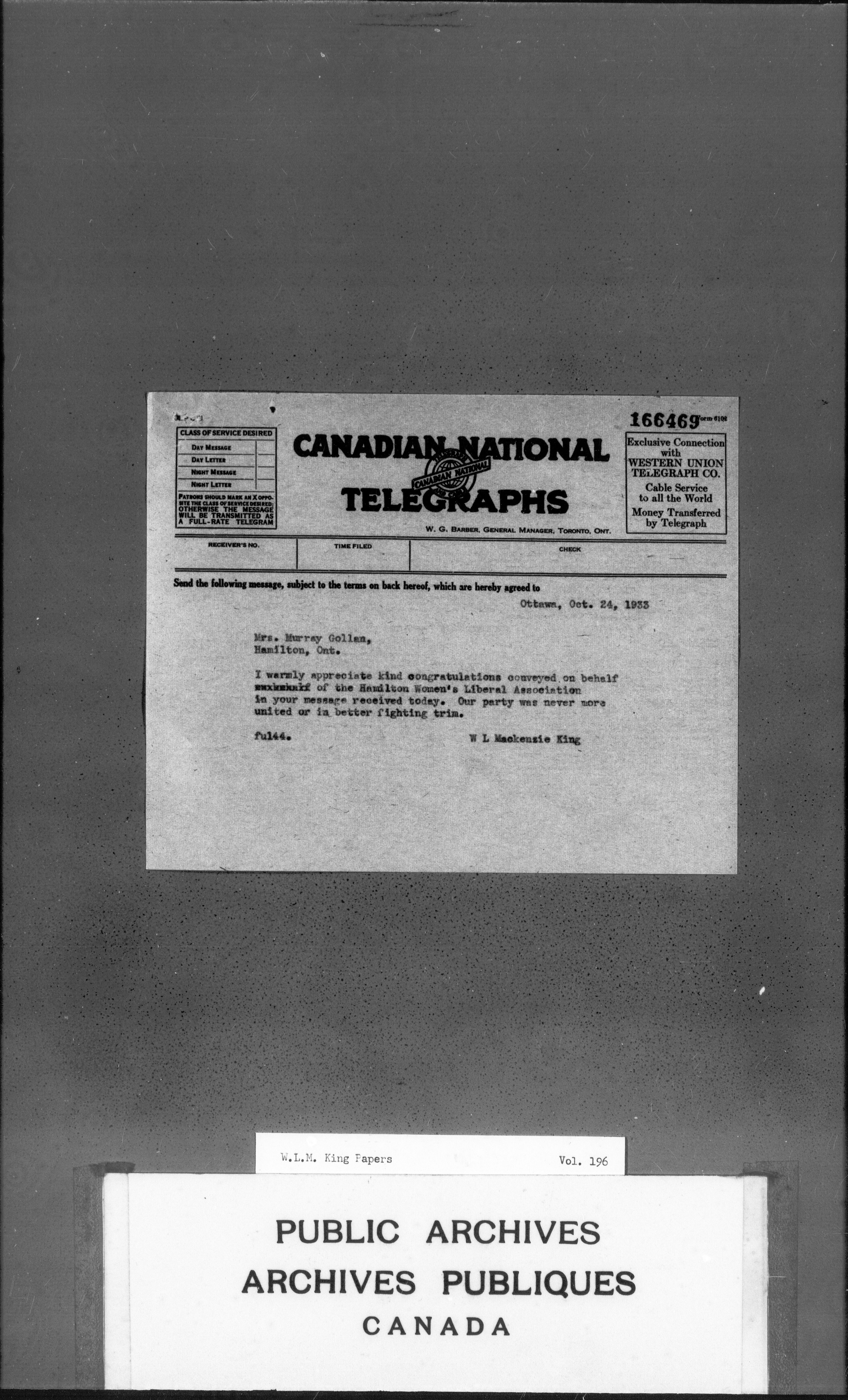 William Lyon Mackenzie King : Primary series correspondence (J1) - 3673