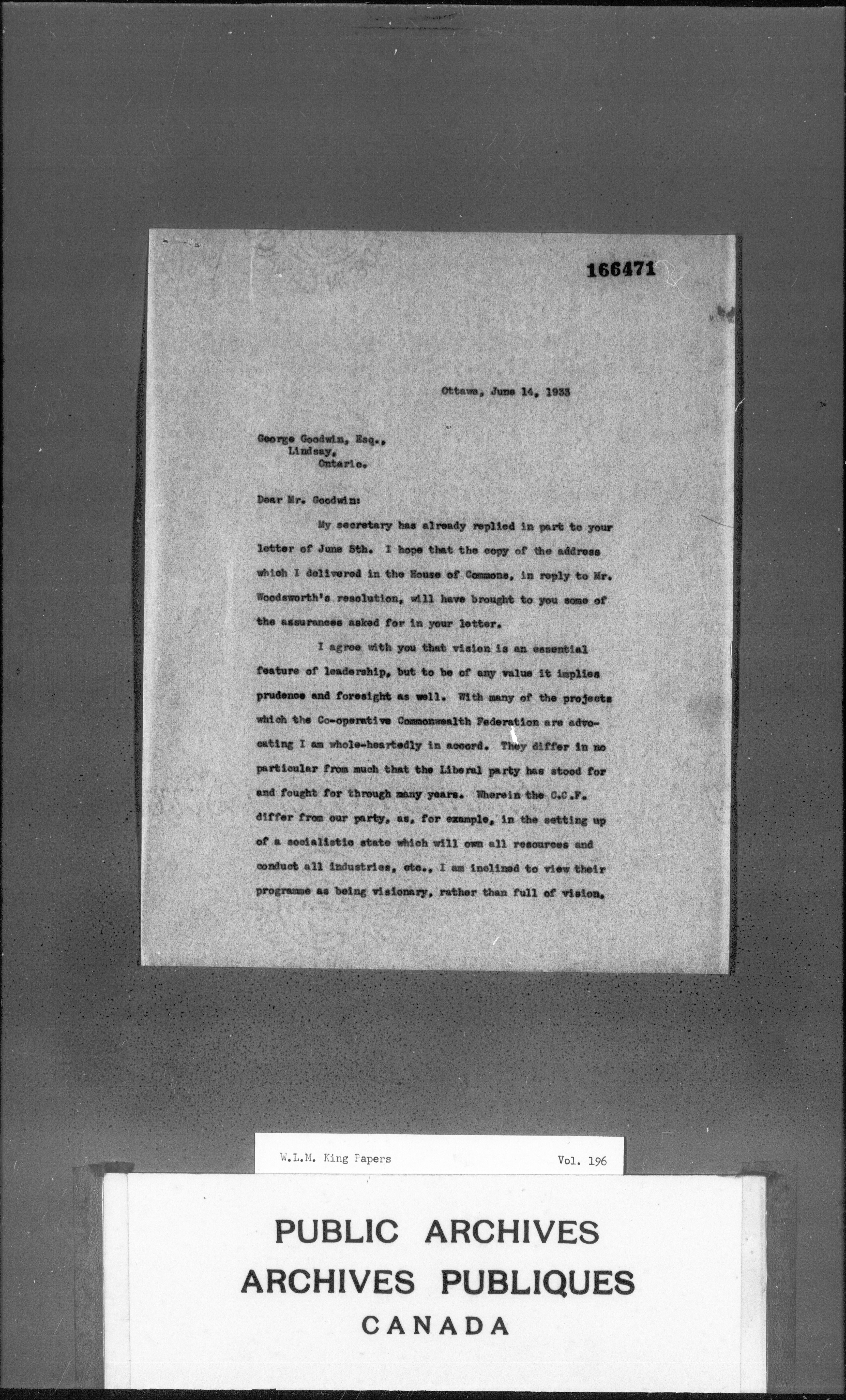 William Lyon Mackenzie King : Primary series correspondence (J1) - 3673
