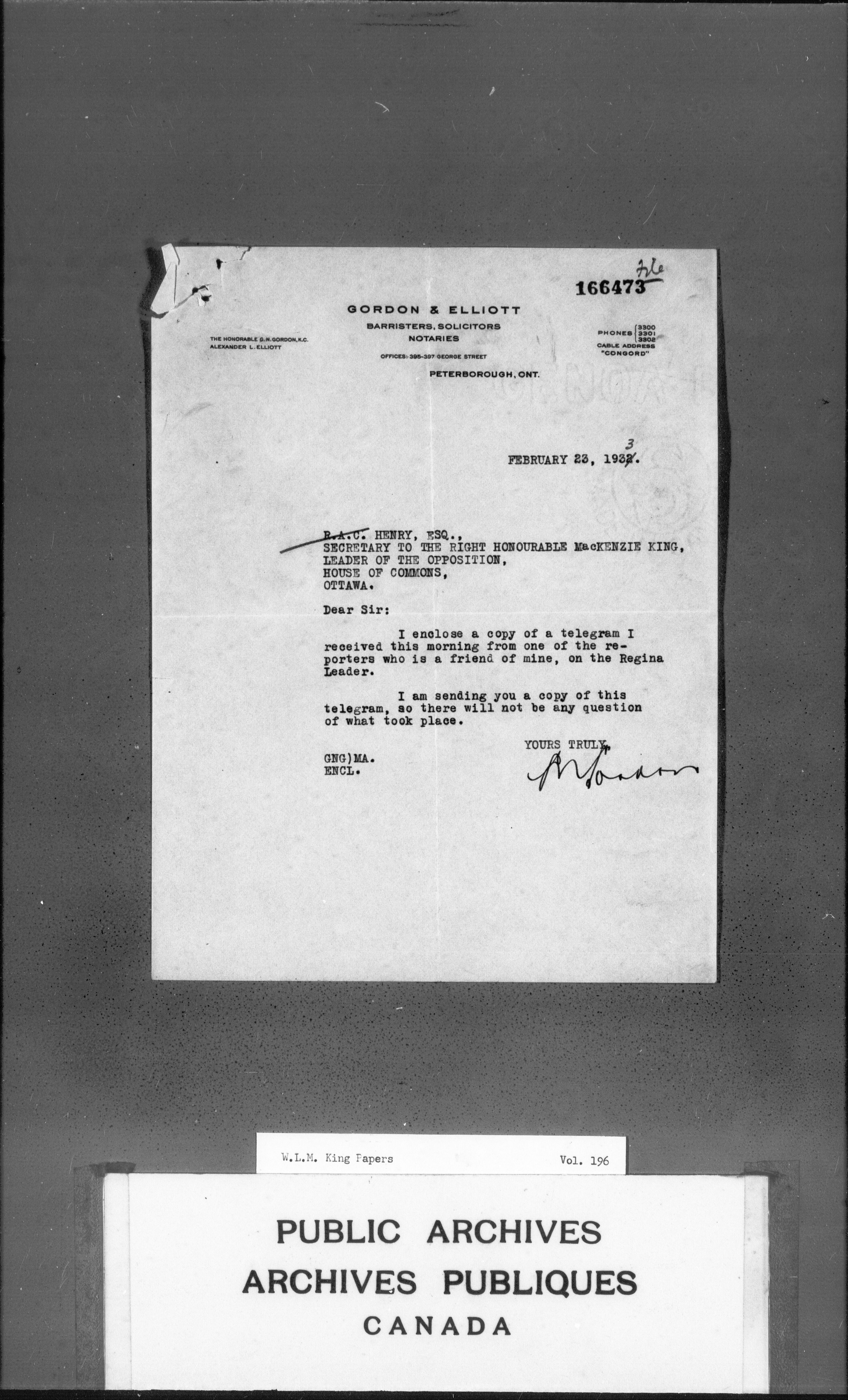 William Lyon Mackenzie King : Primary series correspondence (J1) - 3673