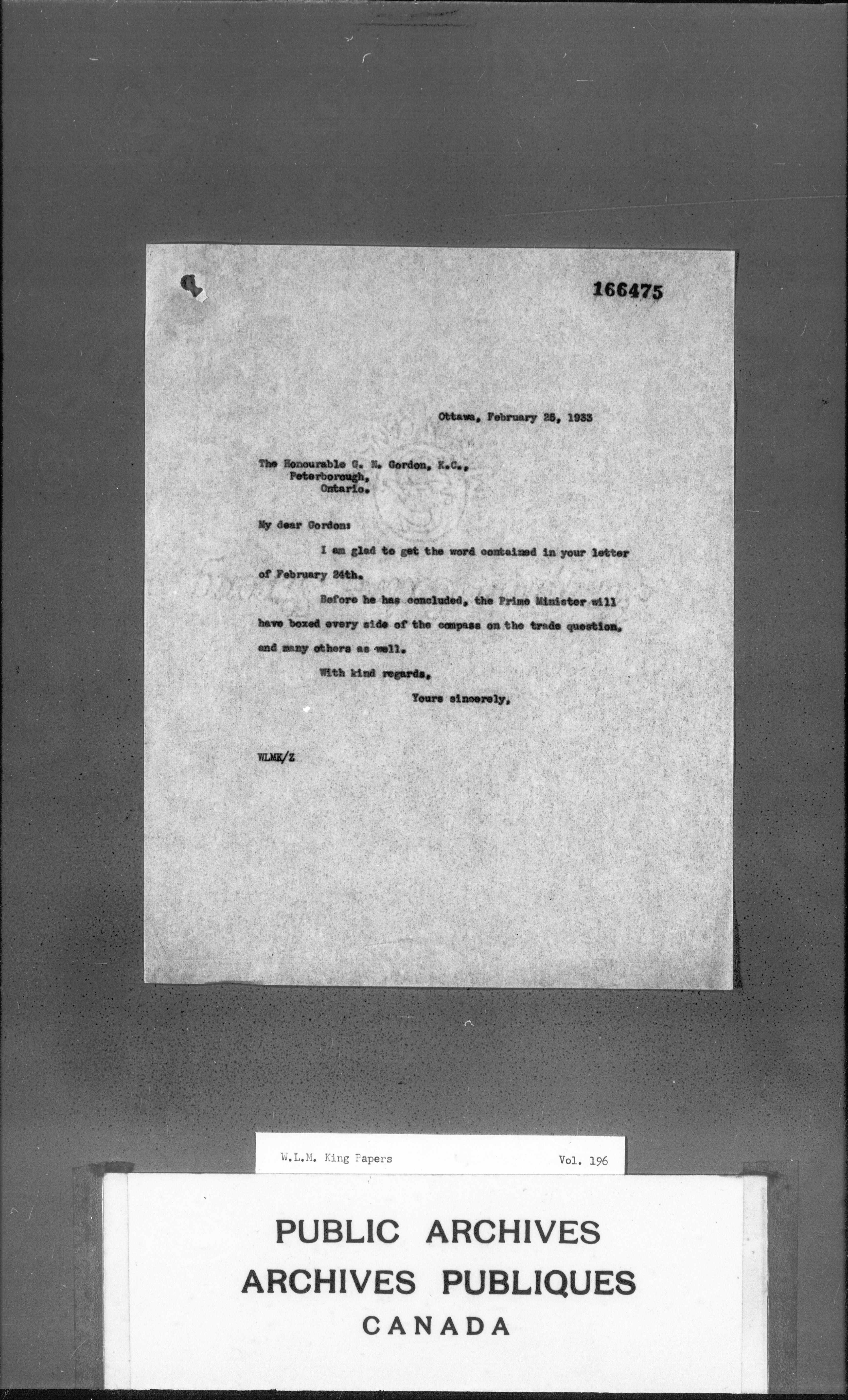 William Lyon Mackenzie King : Primary series correspondence (J1) - 3673