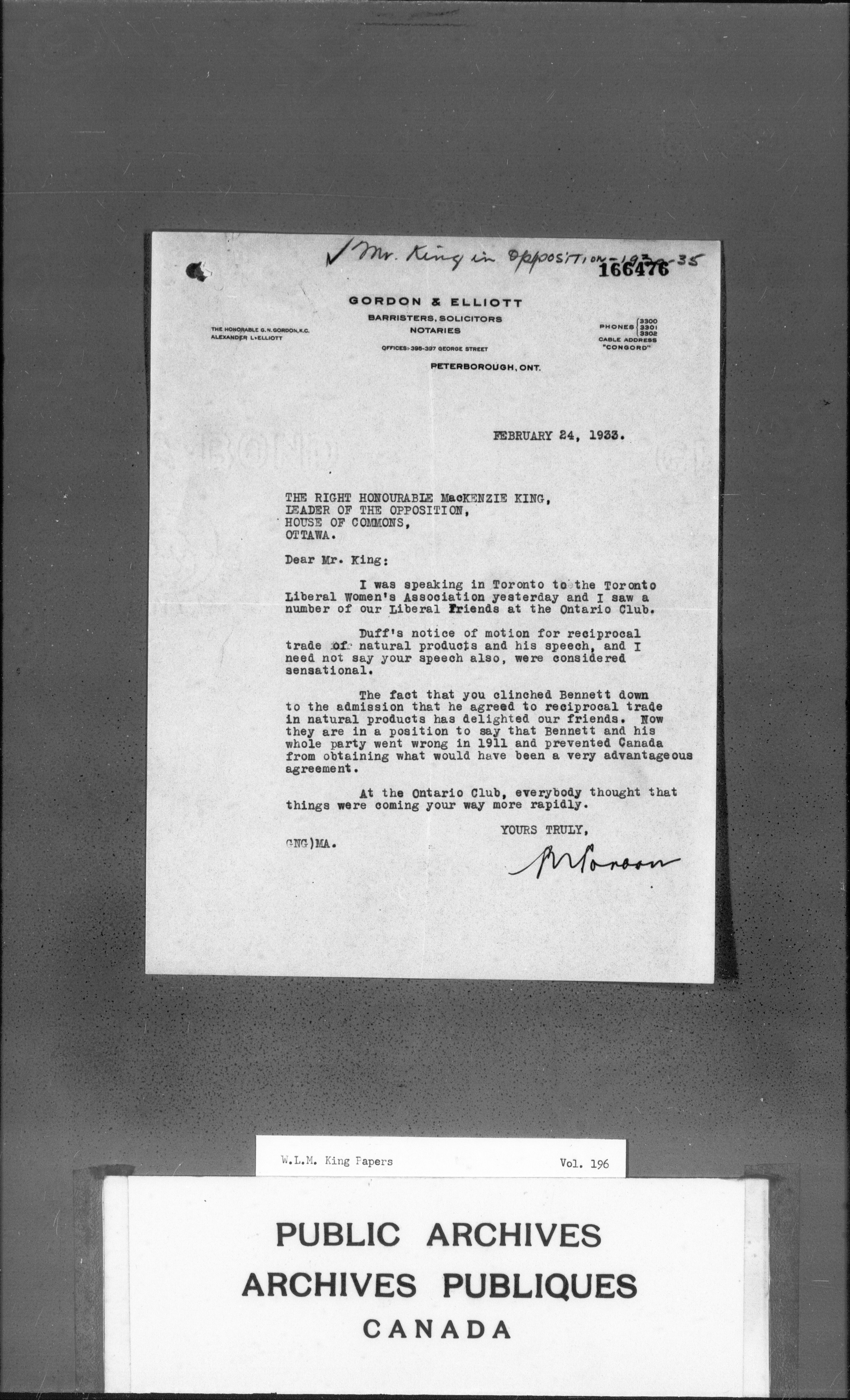 William Lyon Mackenzie King : Primary series correspondence (J1) - 3673