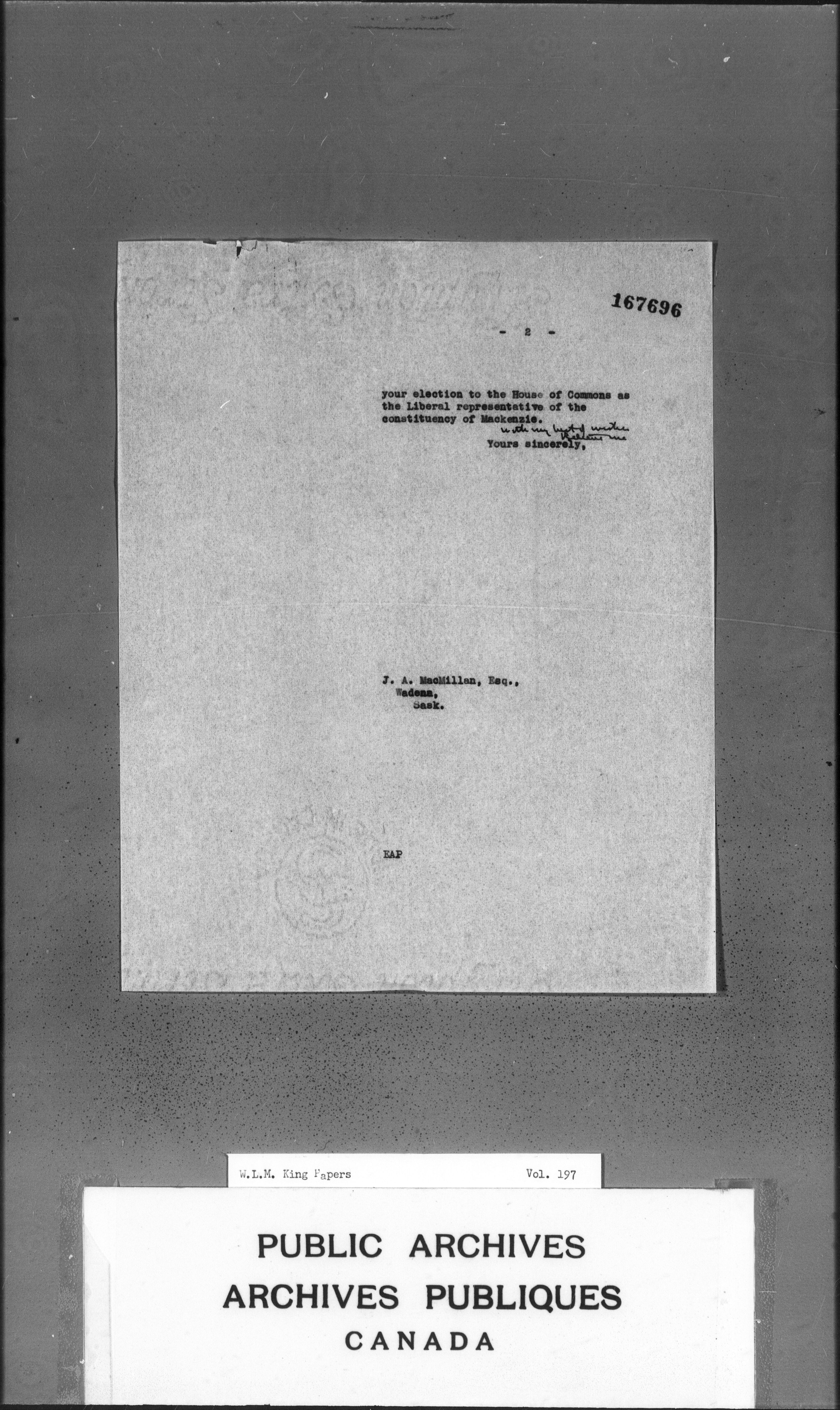 William Lyon Mackenzie King : Primary series correspondence (J1) - 3674