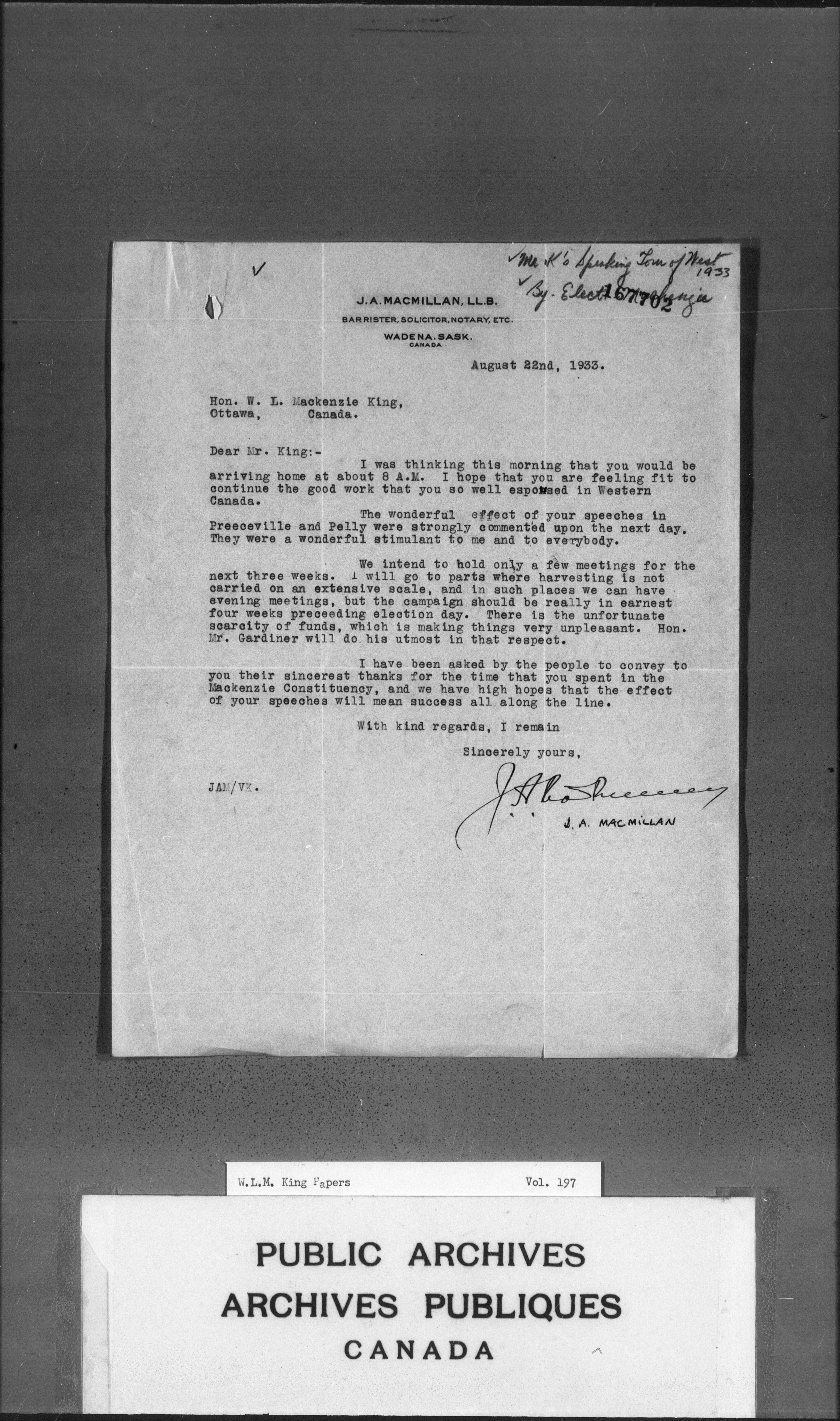 William Lyon Mackenzie King : Primary series correspondence (J1) - 3674