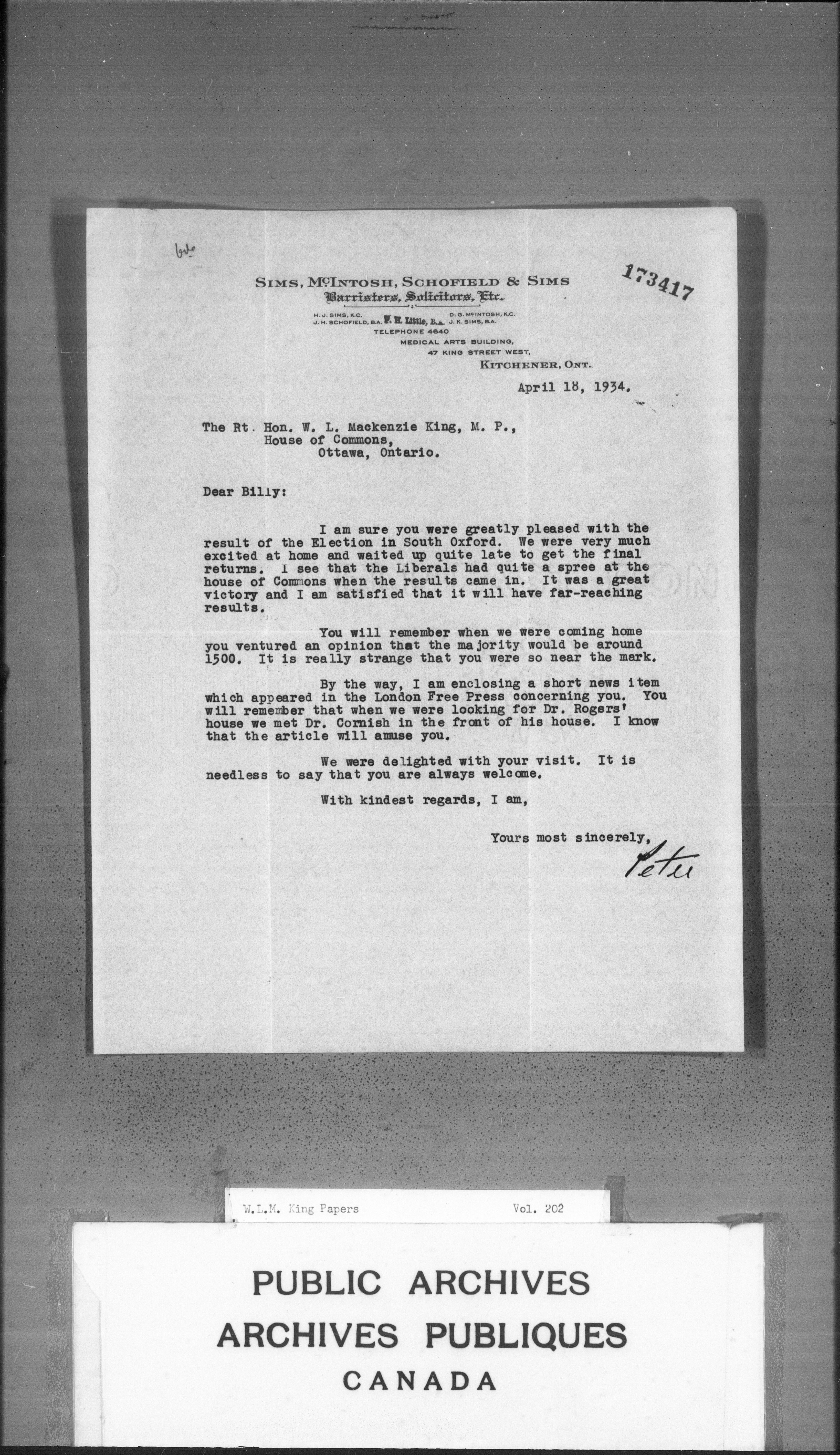 William Lyon Mackenzie King : Primary series correspondence (J1) - 3678