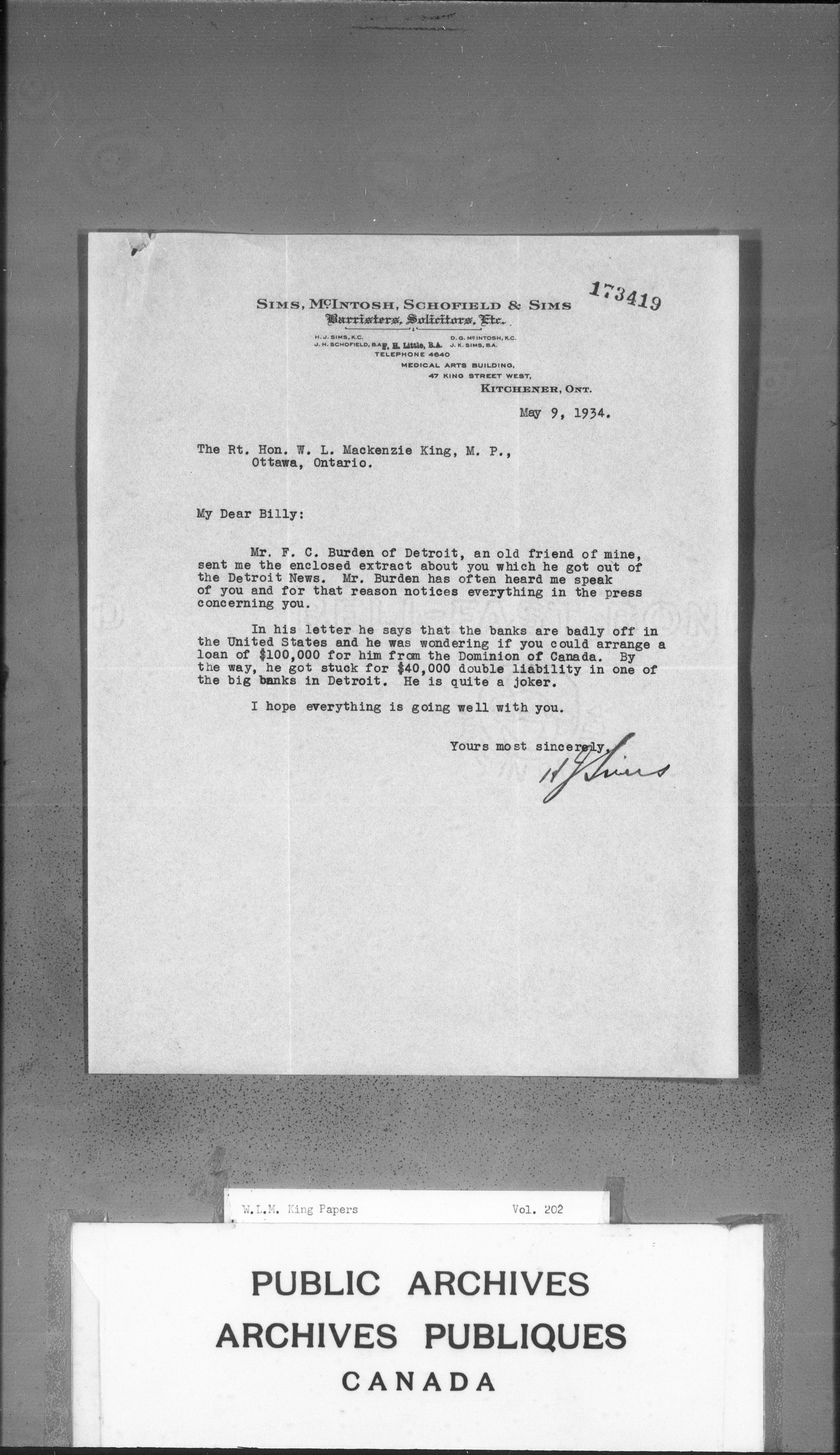 William Lyon Mackenzie King : Primary series correspondence (J1) - 3678