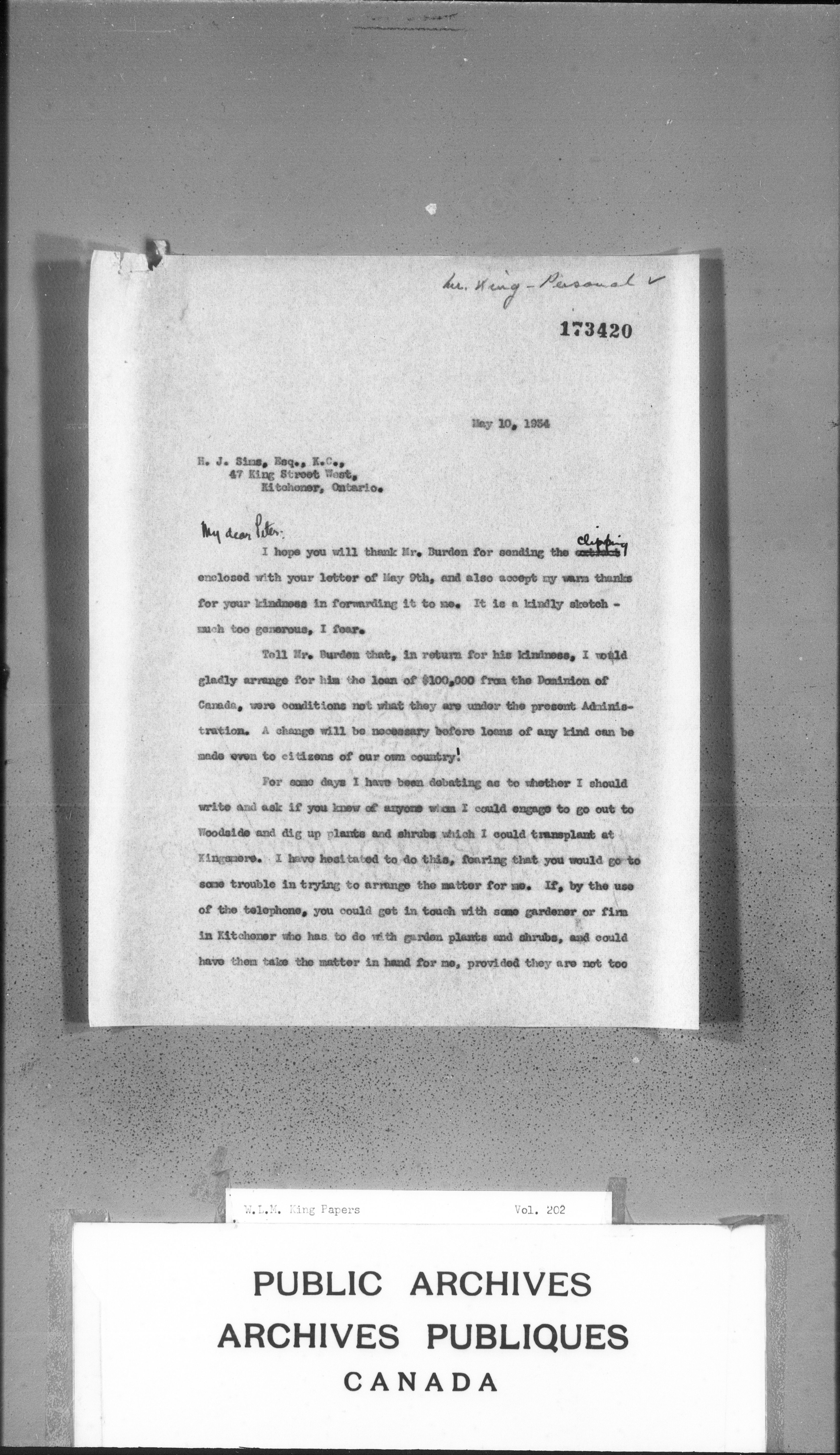 William Lyon Mackenzie King : Primary series correspondence (J1) - 3678