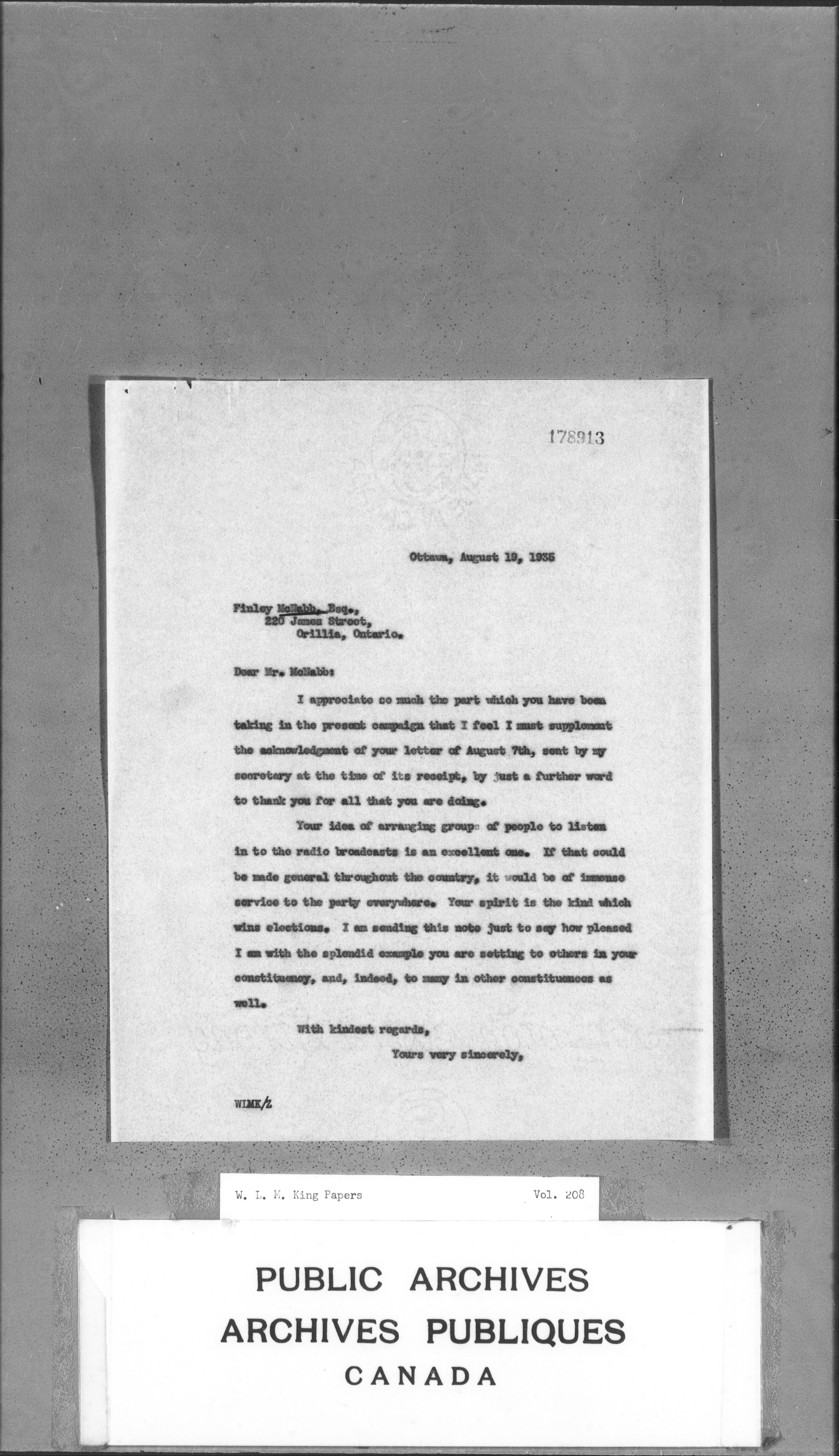 William Lyon Mackenzie King : Primary series correspondence (J1) - 3682