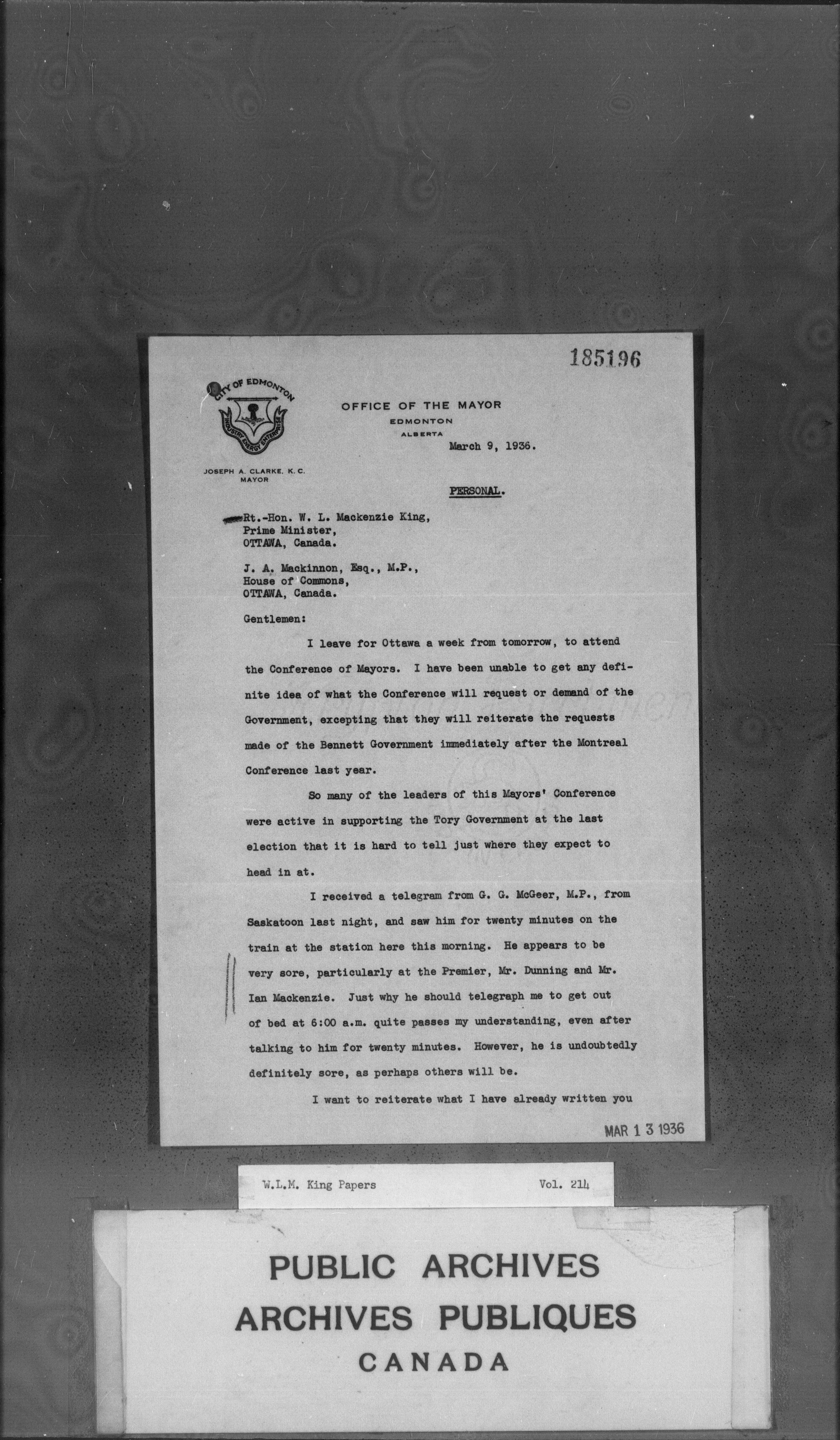 William Lyon Mackenzie King : Primary series correspondence (J1) - 3686