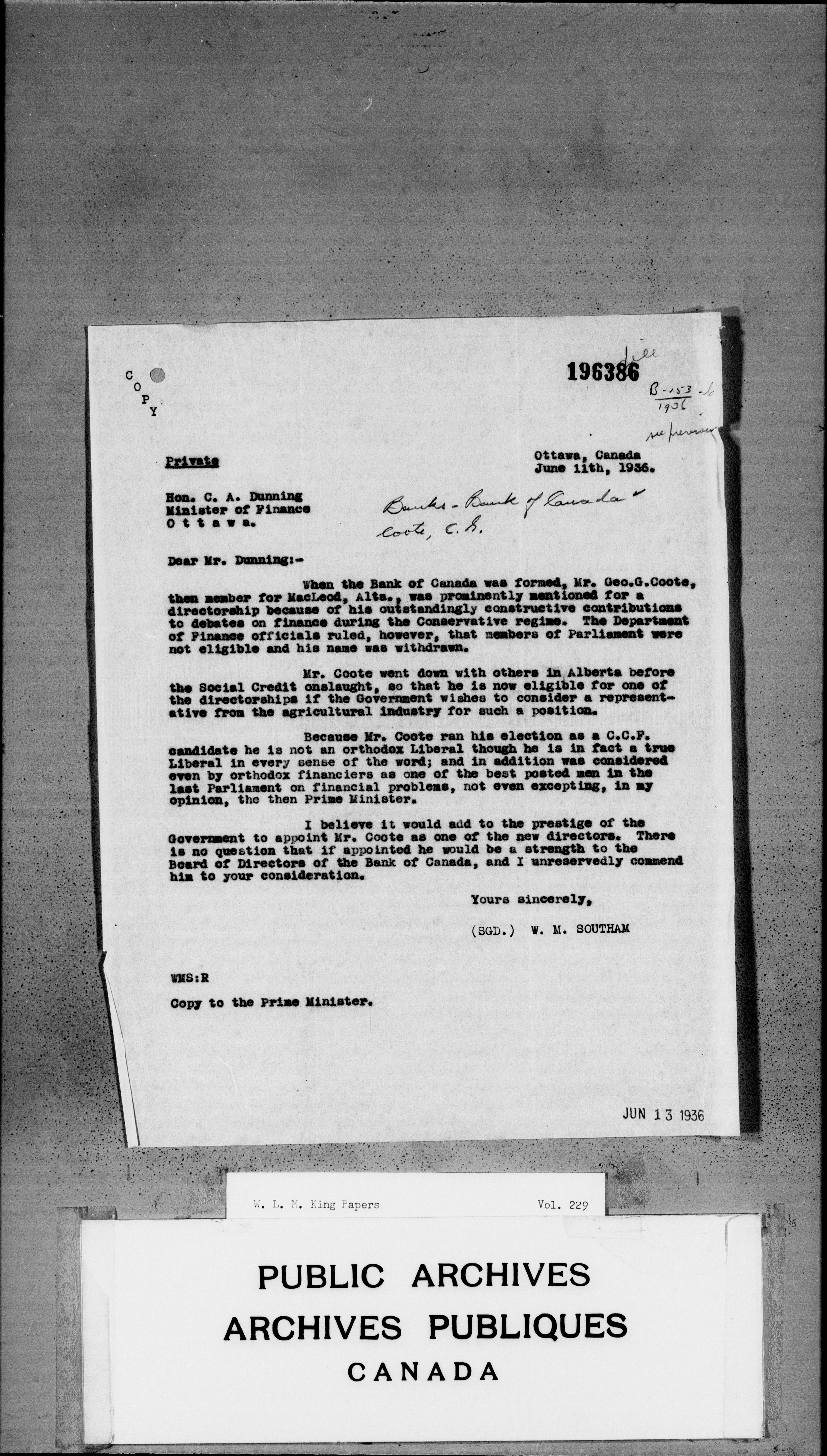 William Lyon Mackenzie King : Primary series correspondence (J1) - 3694