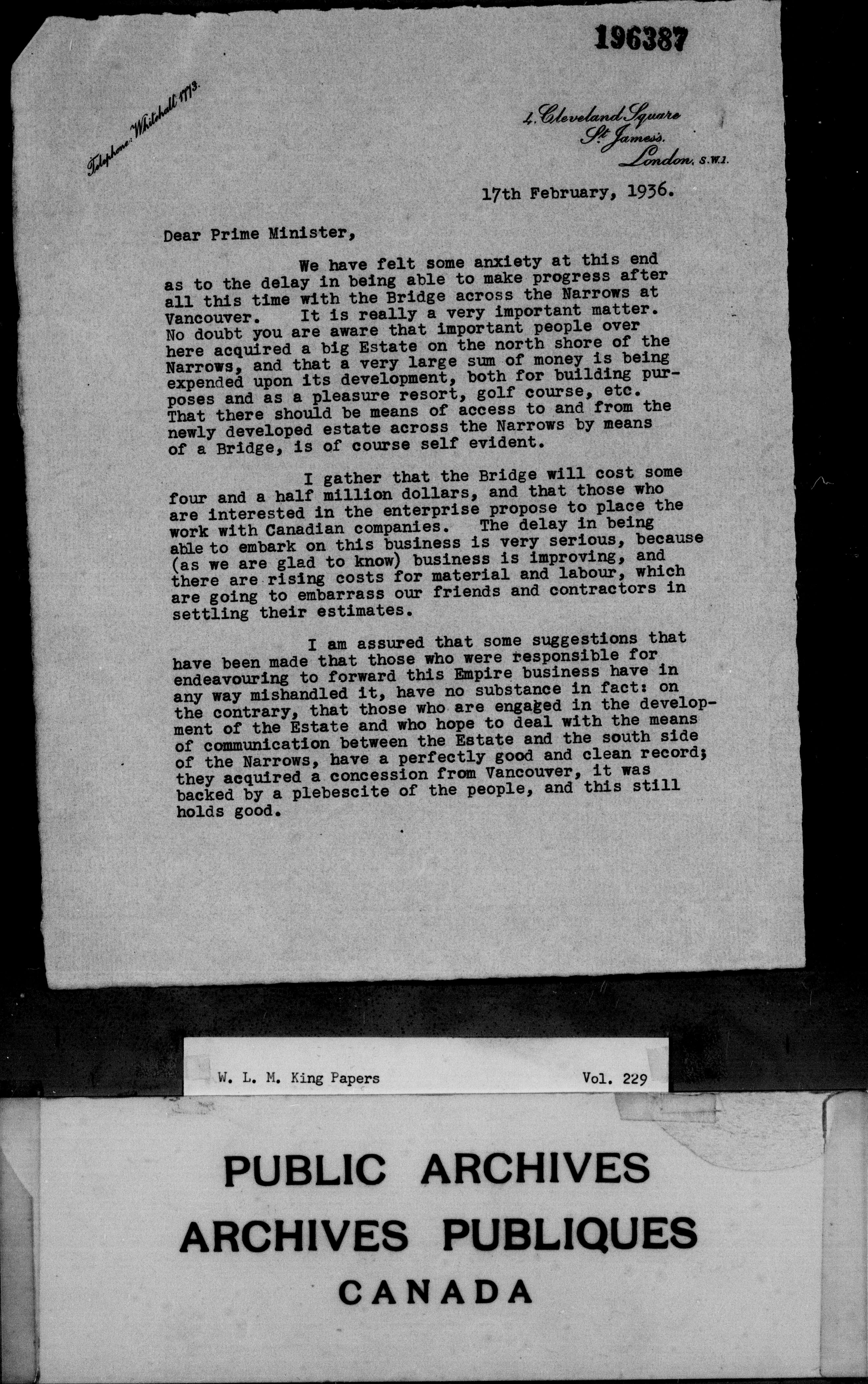 William Lyon Mackenzie King : Primary series correspondence (J1) : C-3694