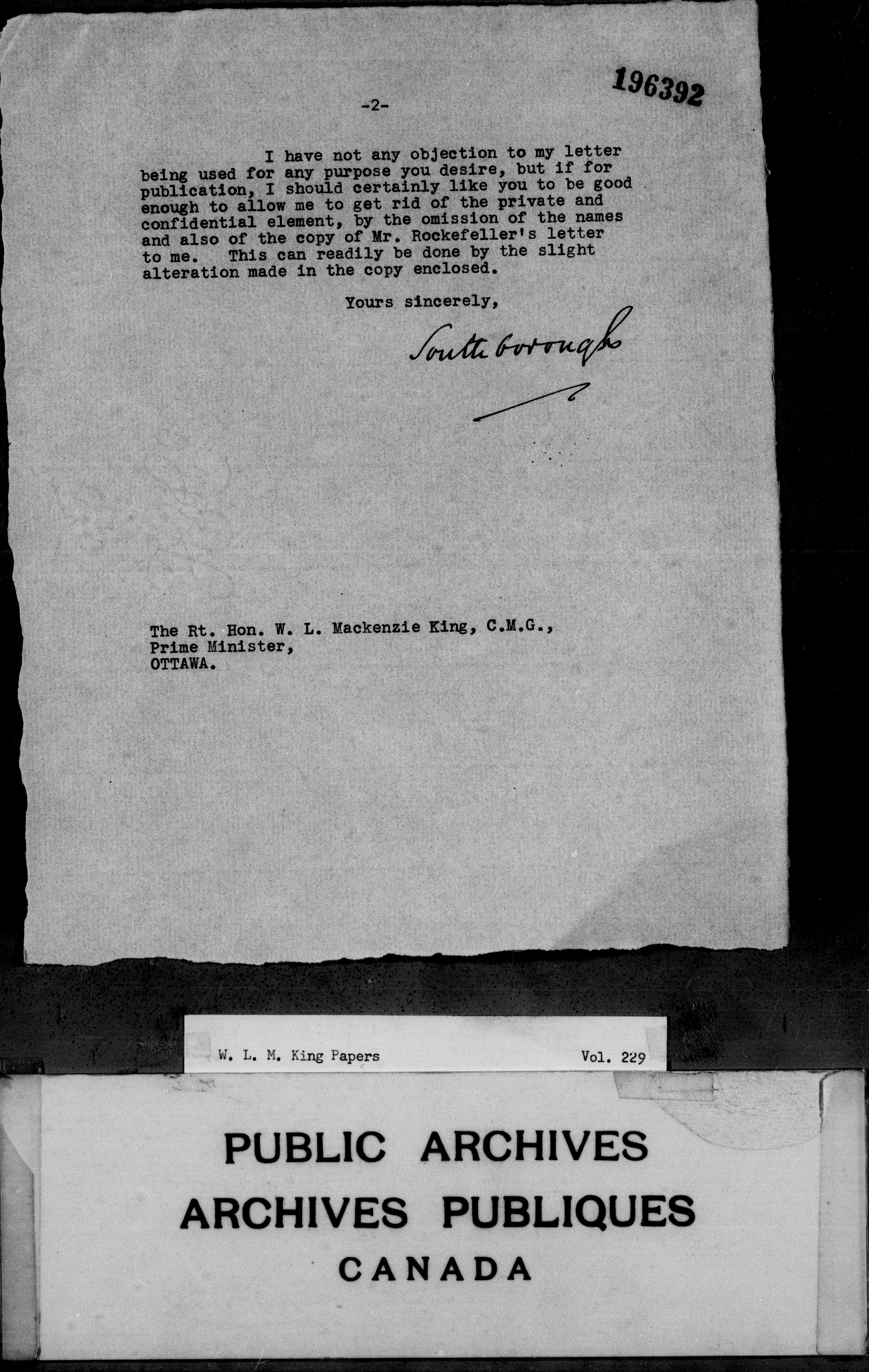 William Lyon Mackenzie King : Primary series correspondence (J1) - 3694