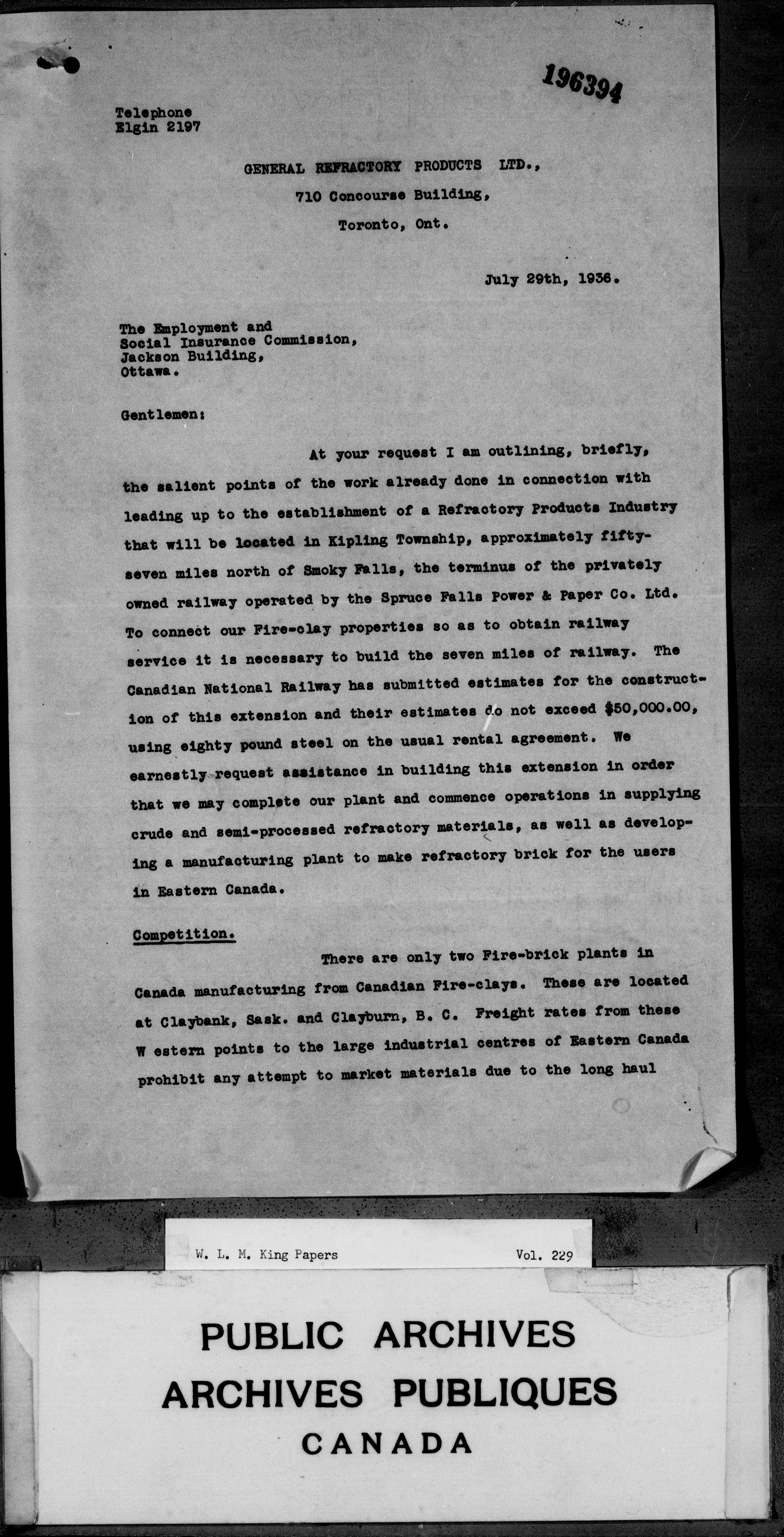 William Lyon Mackenzie King : Primary series correspondence (J1) - 3694