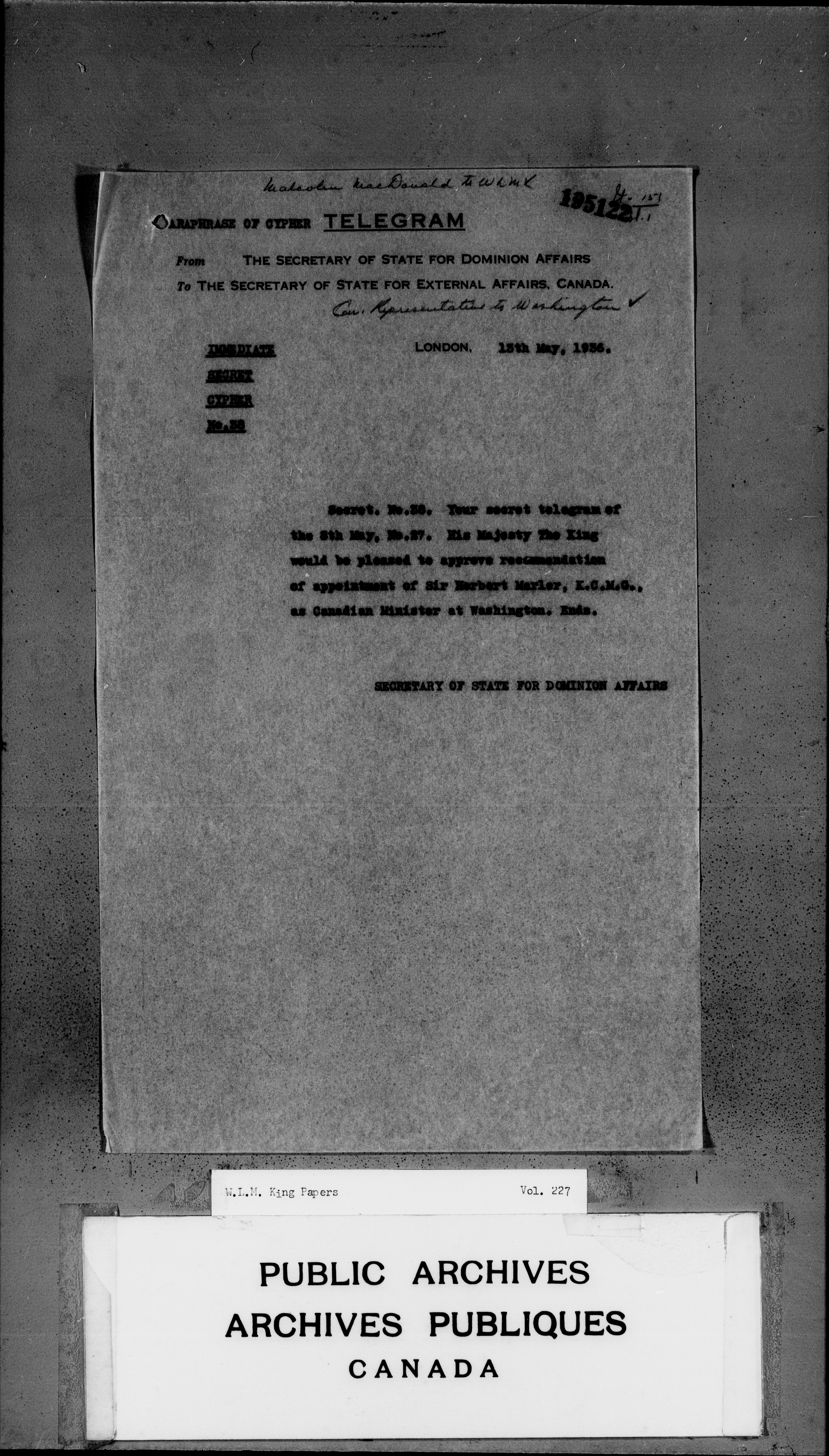 William Lyon Mackenzie King : Primary series correspondence (J1) : C-3694