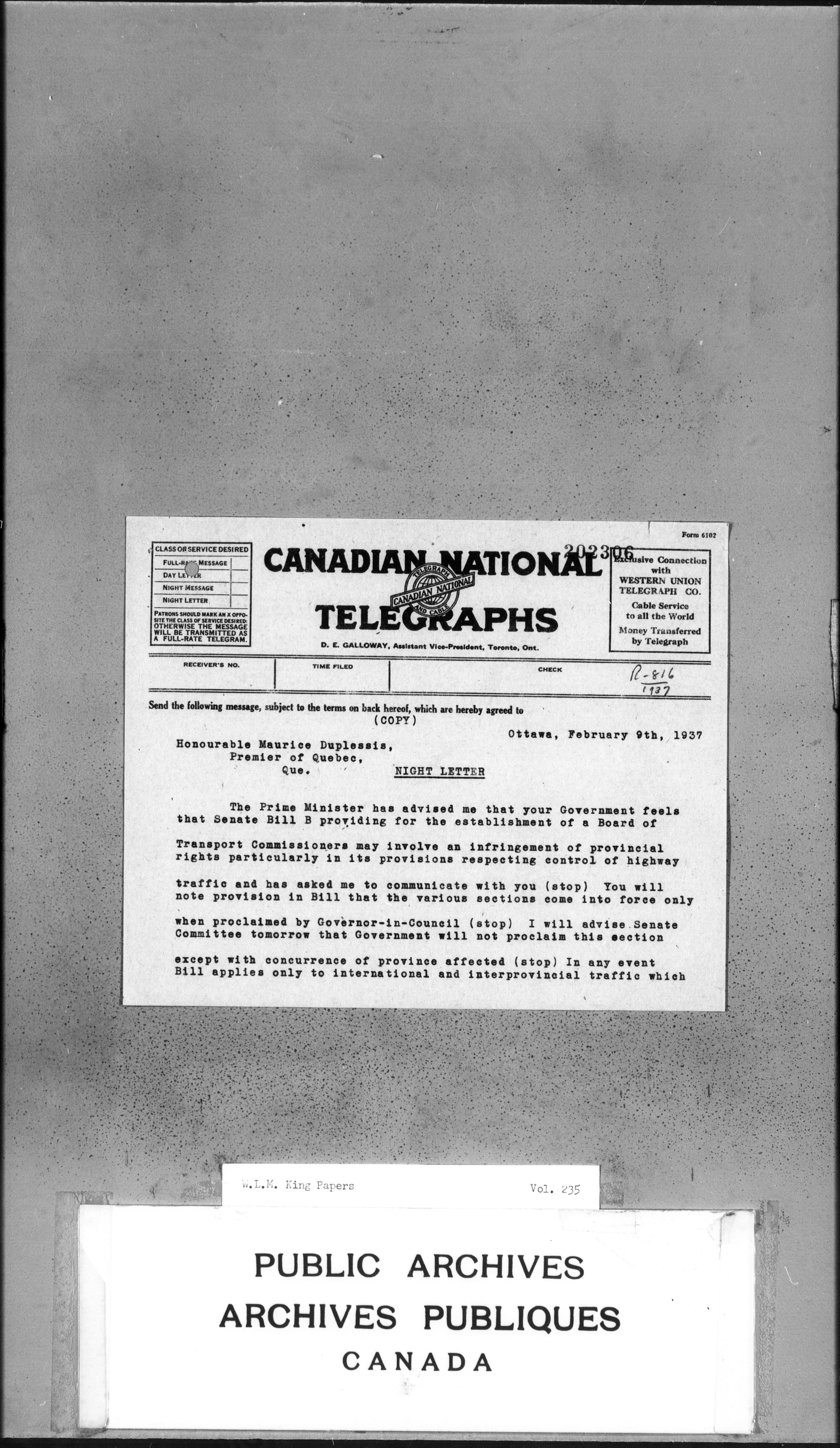 William Lyon Mackenzie King : Primary series correspondence (J1) - 3726