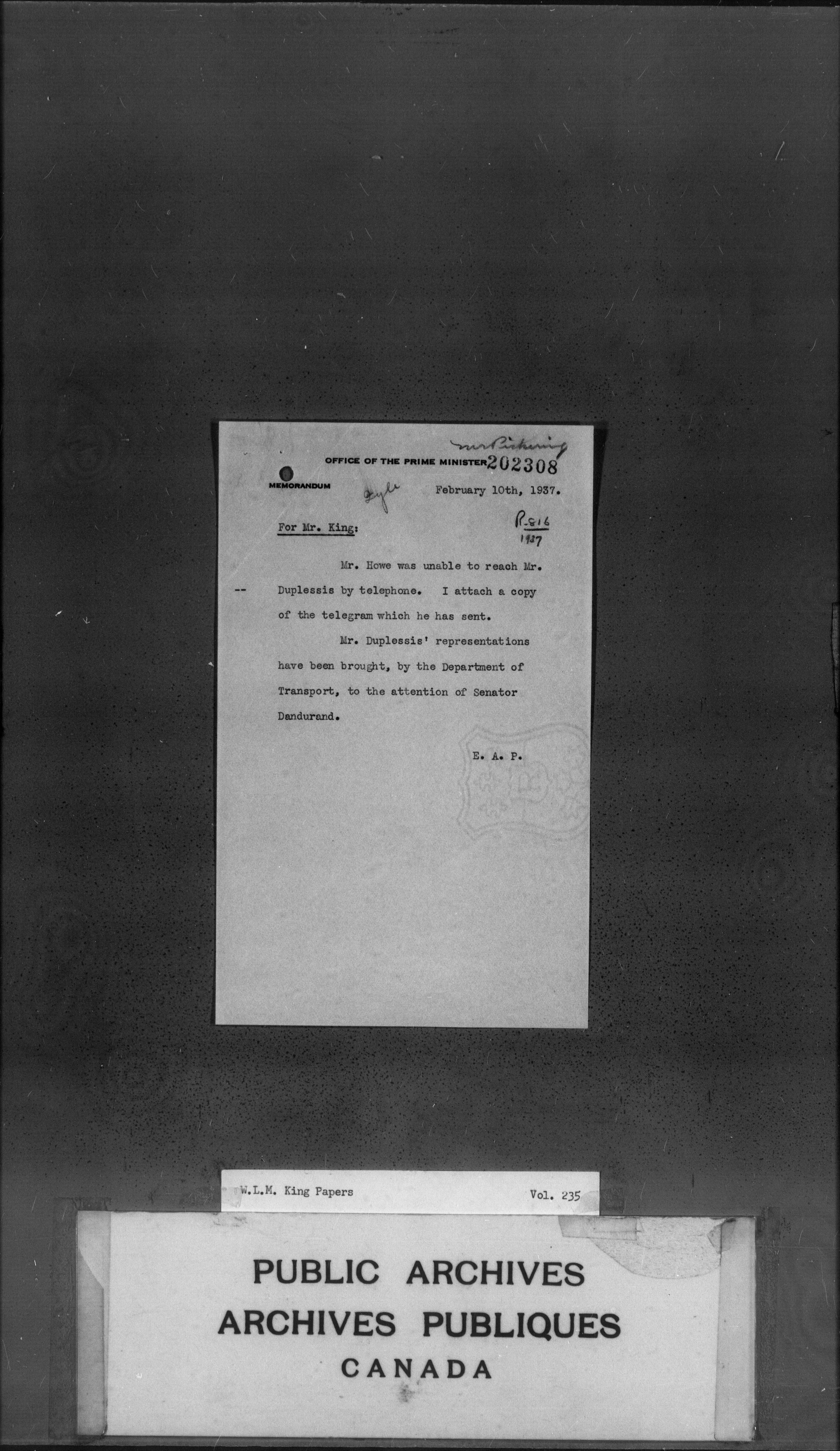 William Lyon Mackenzie King : Primary series correspondence (J1) : C-3726