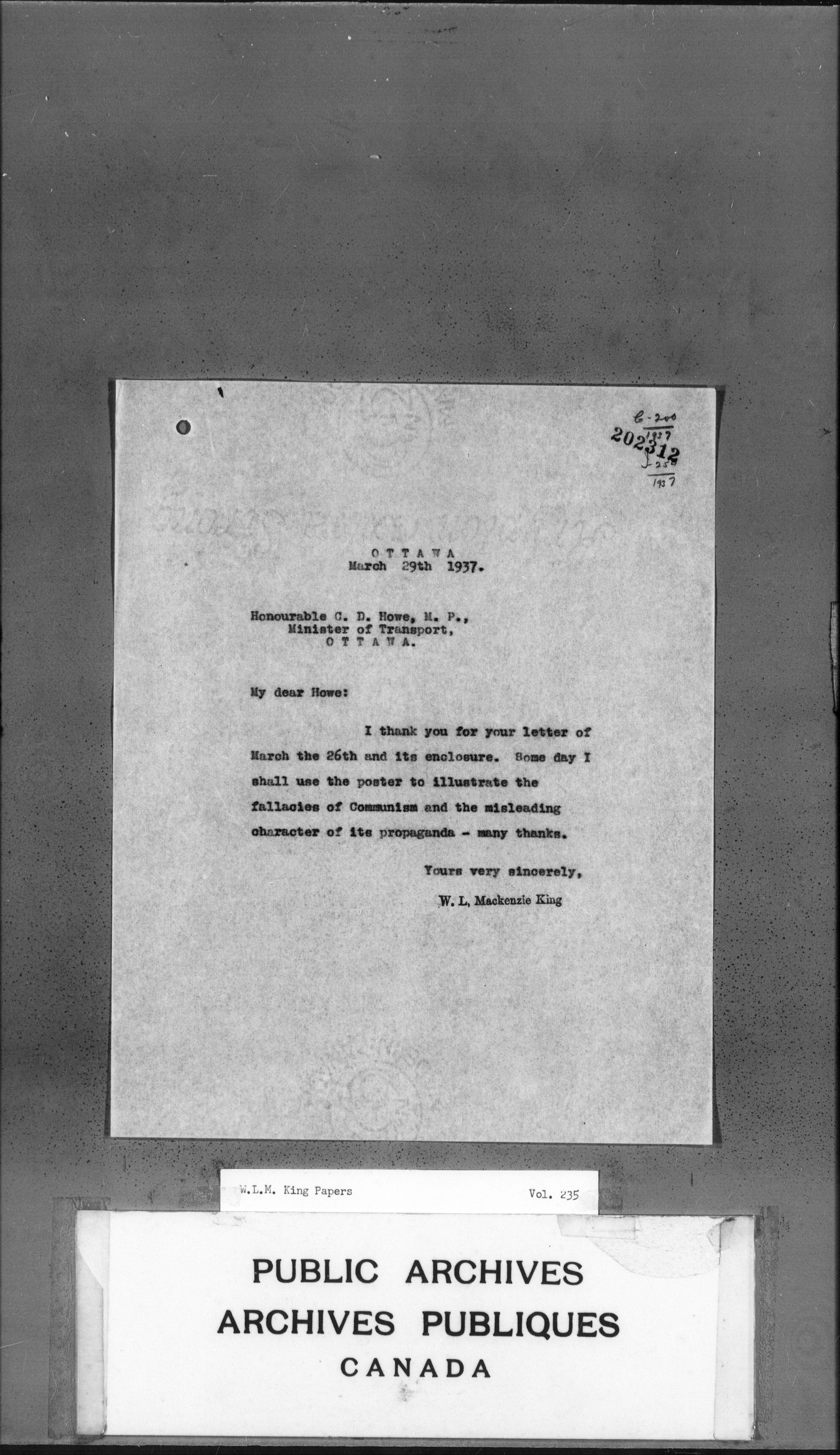 William Lyon Mackenzie King : Primary series correspondence (J1) - 3726