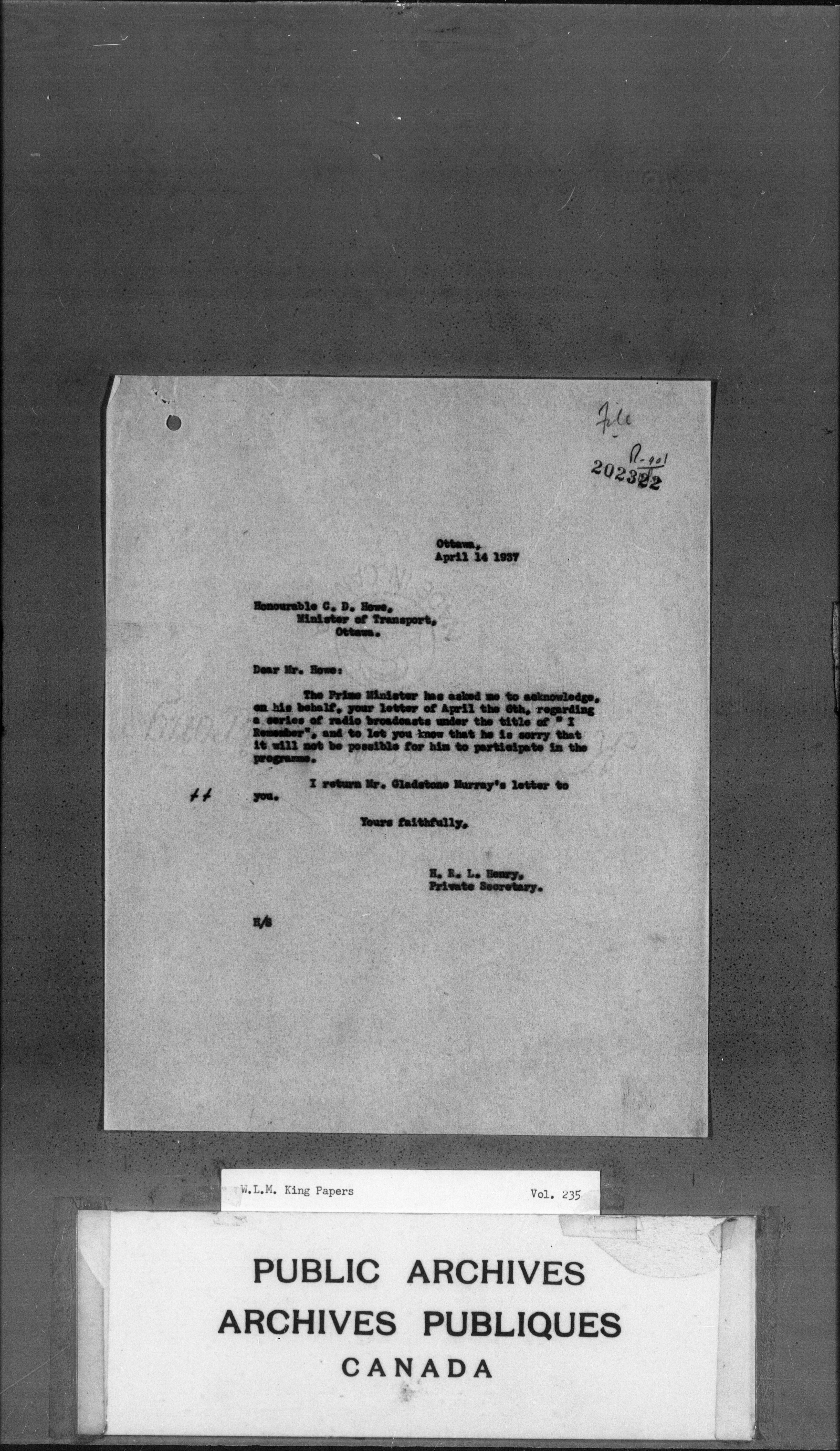 William Lyon Mackenzie King : Primary series correspondence (J1) : C-3726