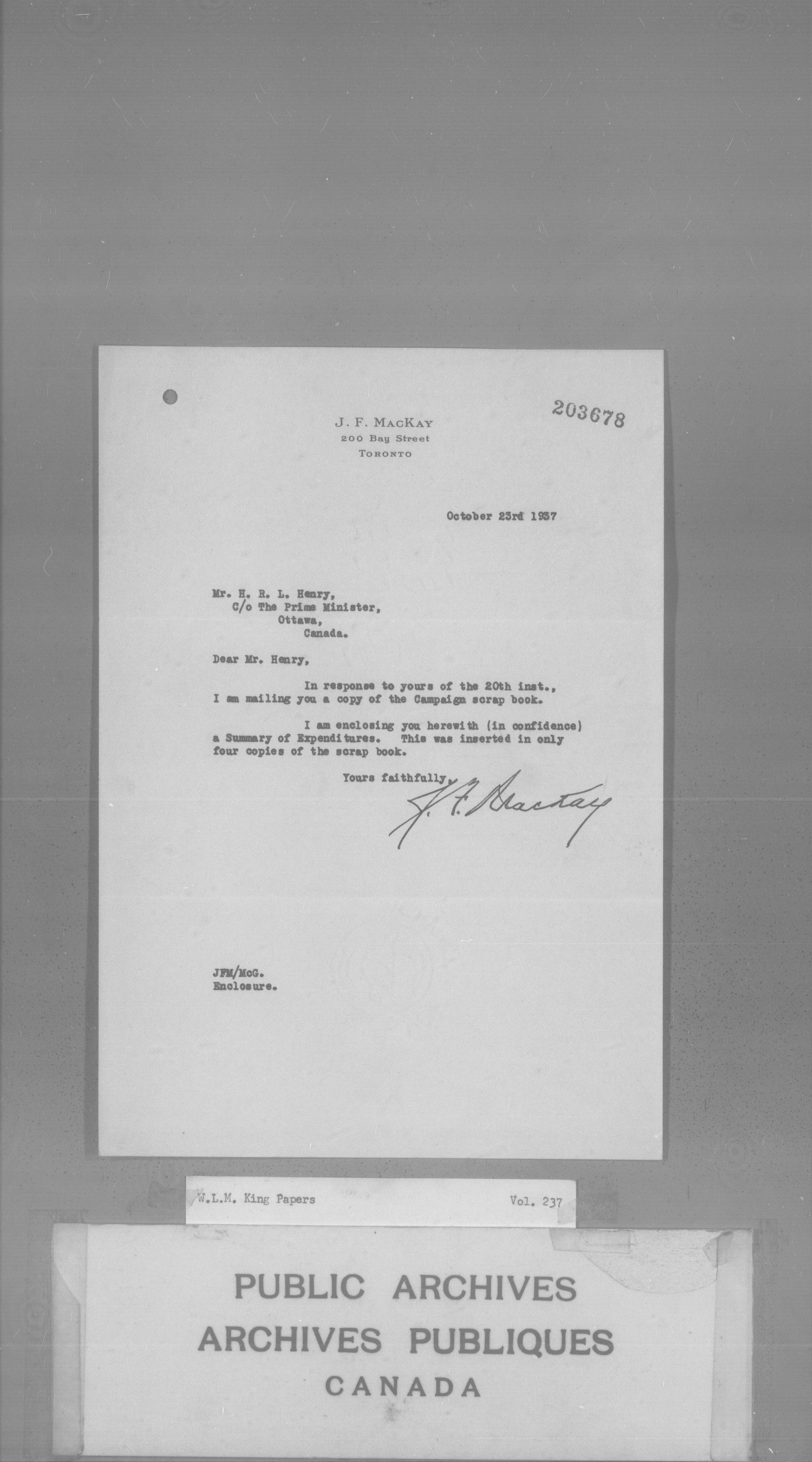 William Lyon Mackenzie King : Primary series correspondence (J1) : C-3727