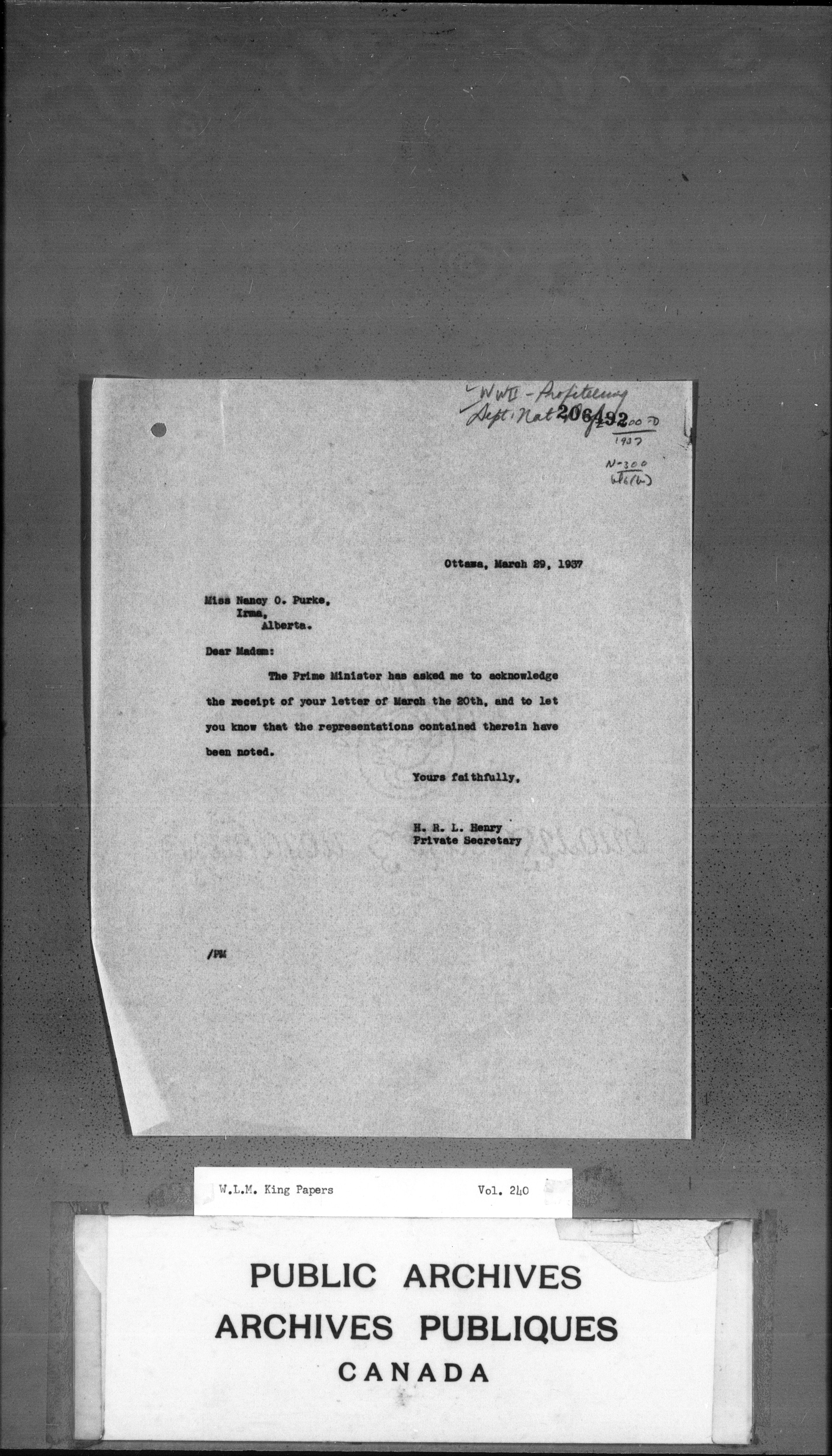 William Lyon Mackenzie King : Primary series correspondence (J1) - 3728