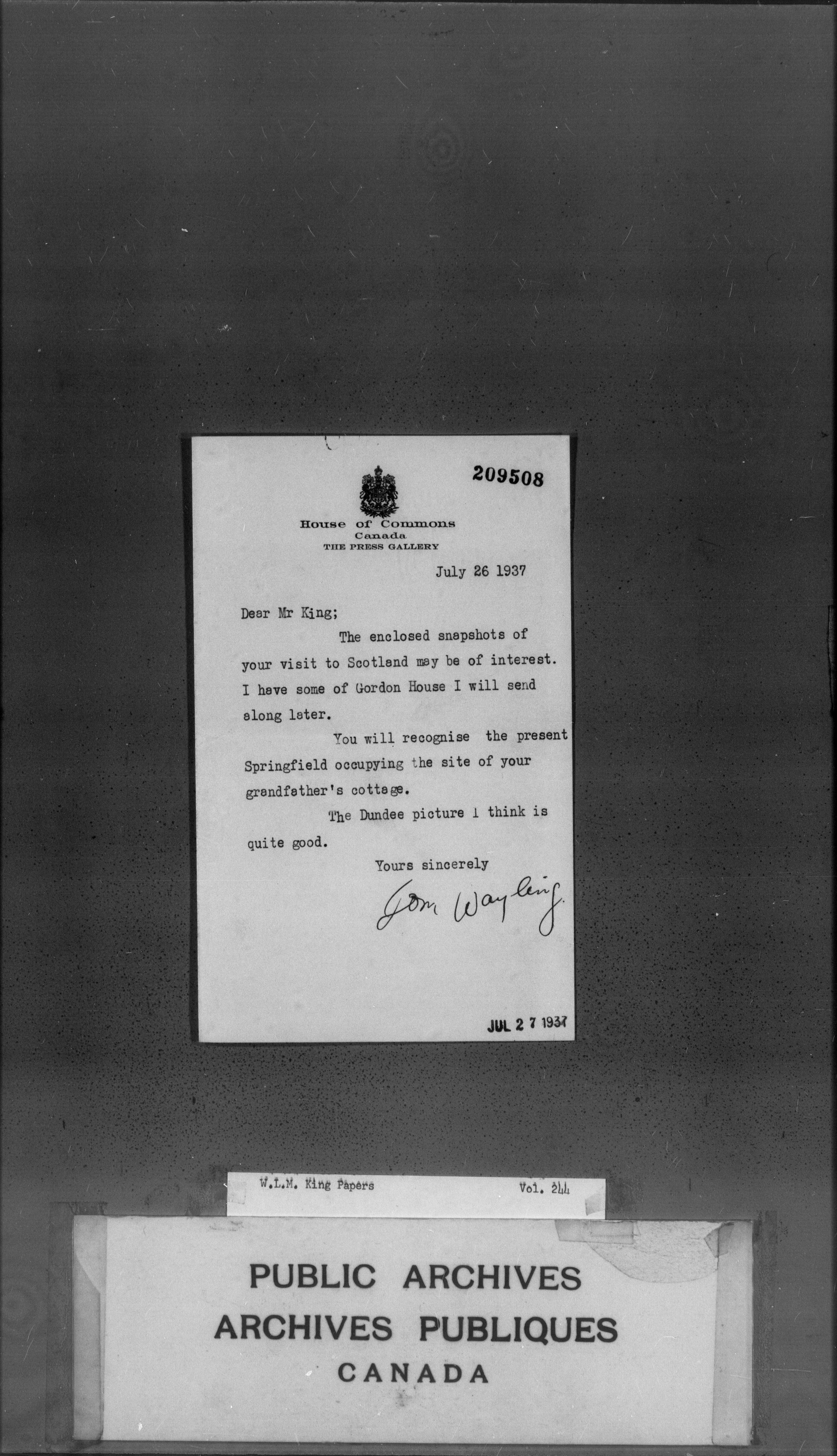 William Lyon Mackenzie King : Primary series correspondence (J1) - 3731