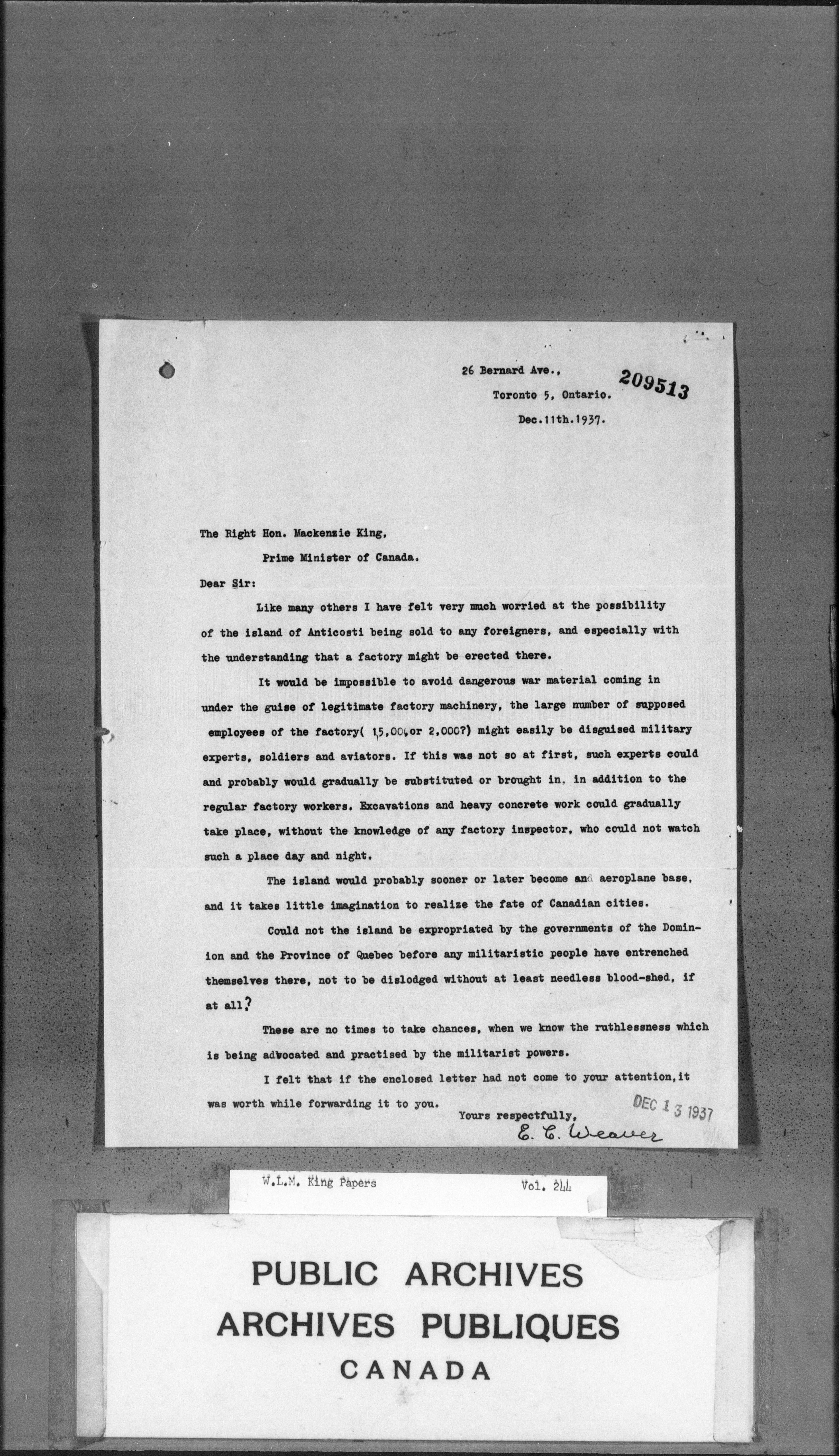 William Lyon Mackenzie King : Primary series correspondence (J1) : C-3731
