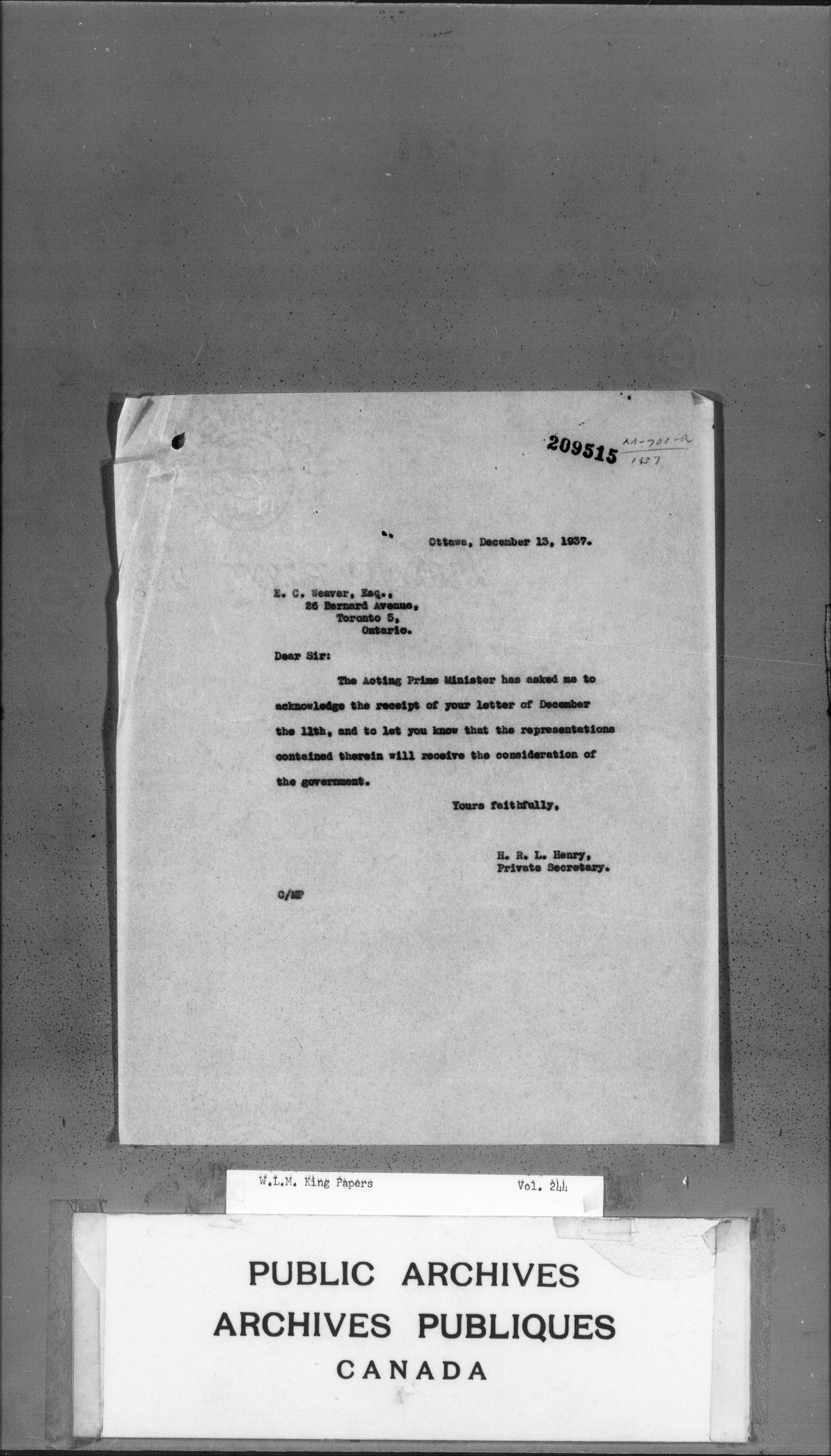 William Lyon Mackenzie King : Primary series correspondence (J1) : C-3731
