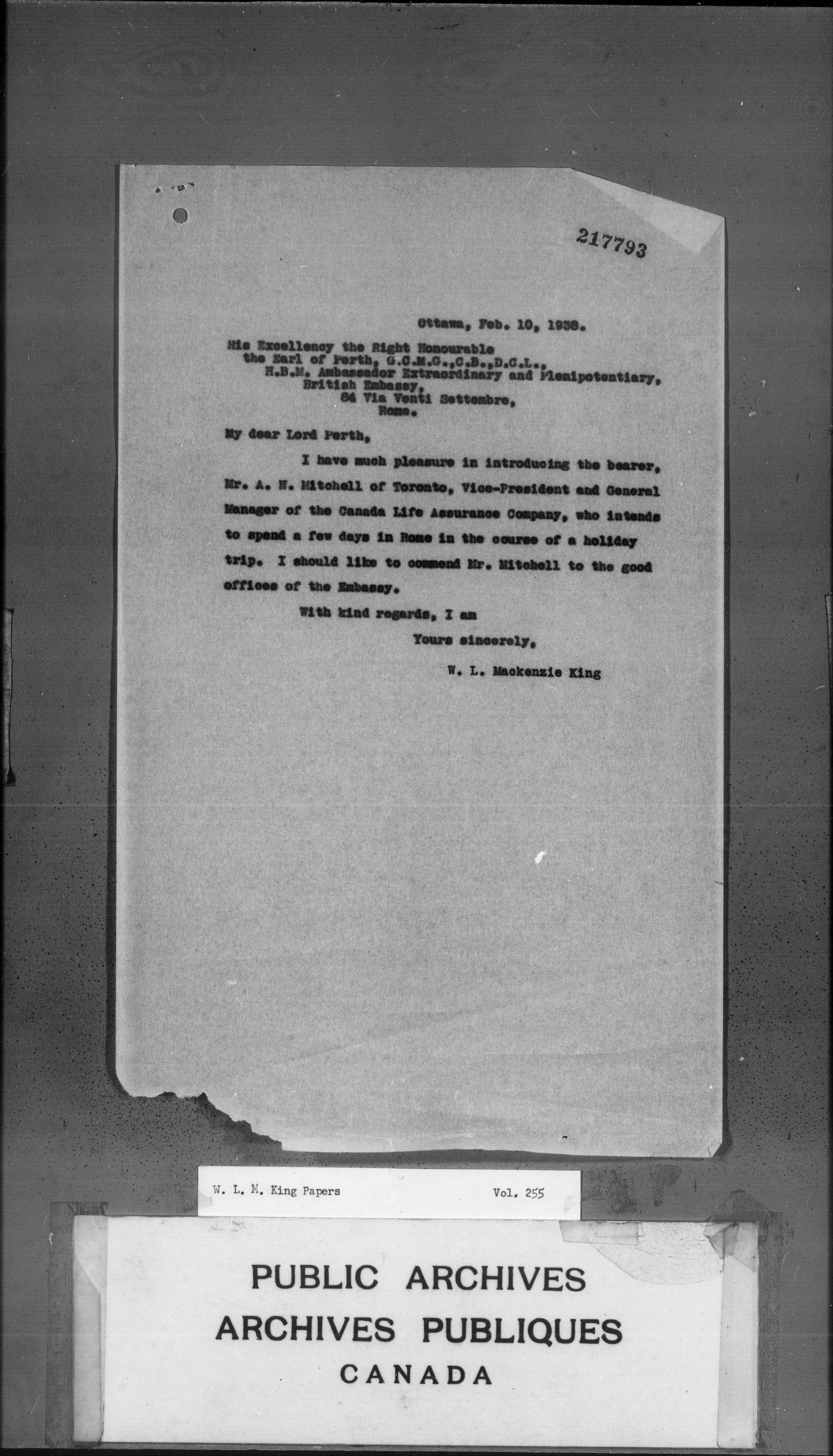 William Lyon Mackenzie King : Primary series correspondence (J1) - 3736