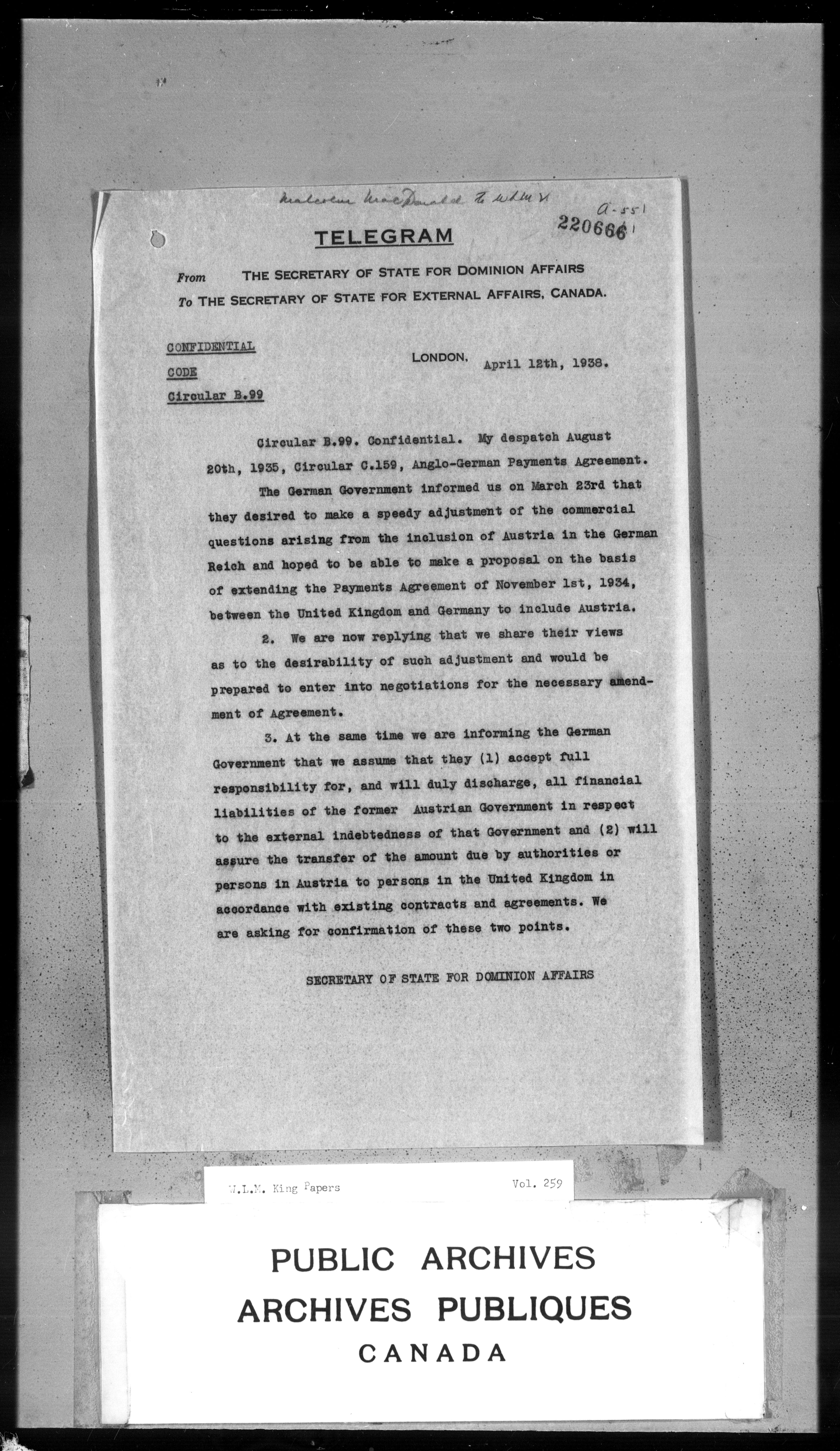 William Lyon Mackenzie King : Primary series correspondence (J1) - 3738
