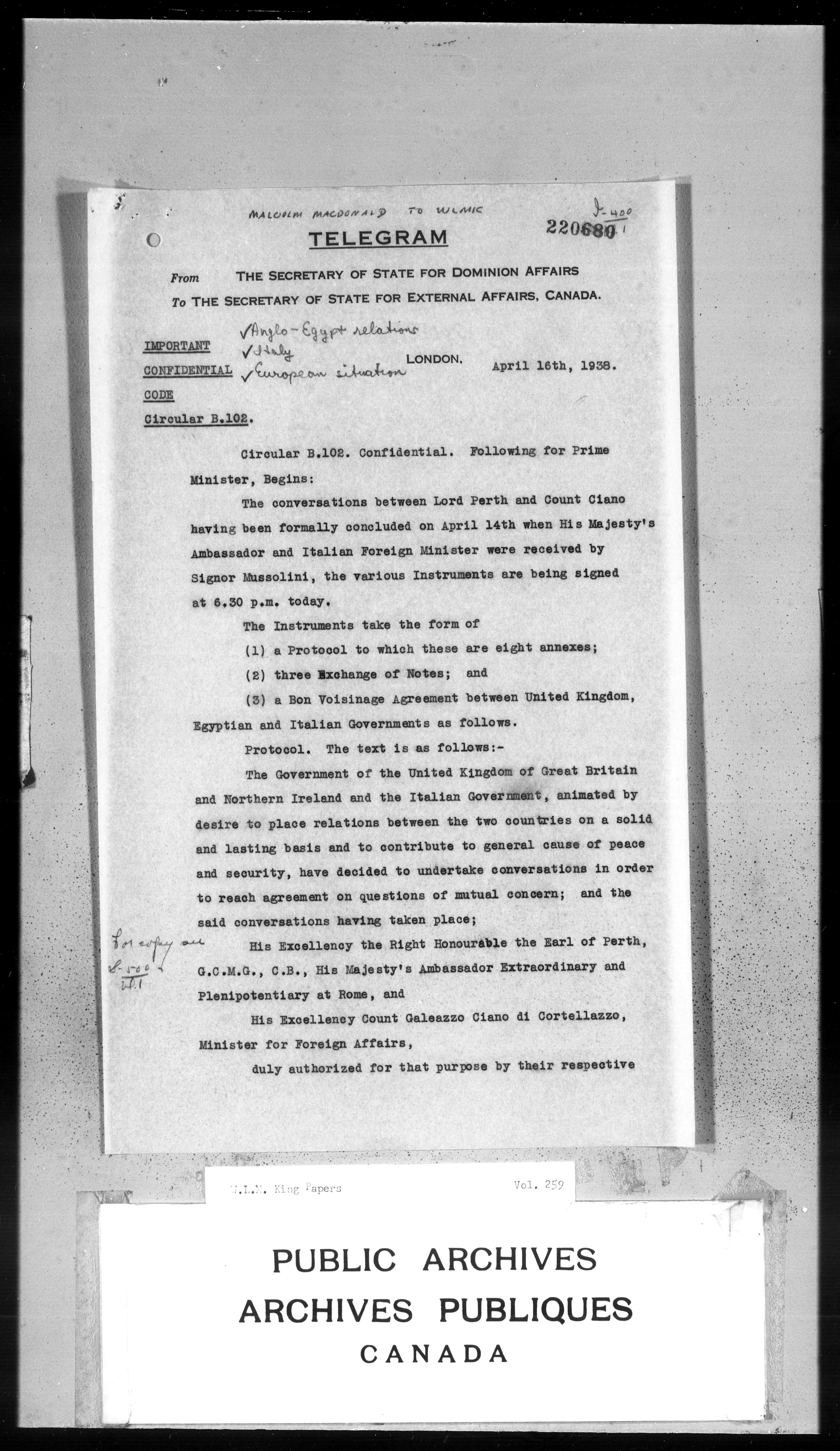 William Lyon Mackenzie King : Primary series correspondence (J1) - 3738