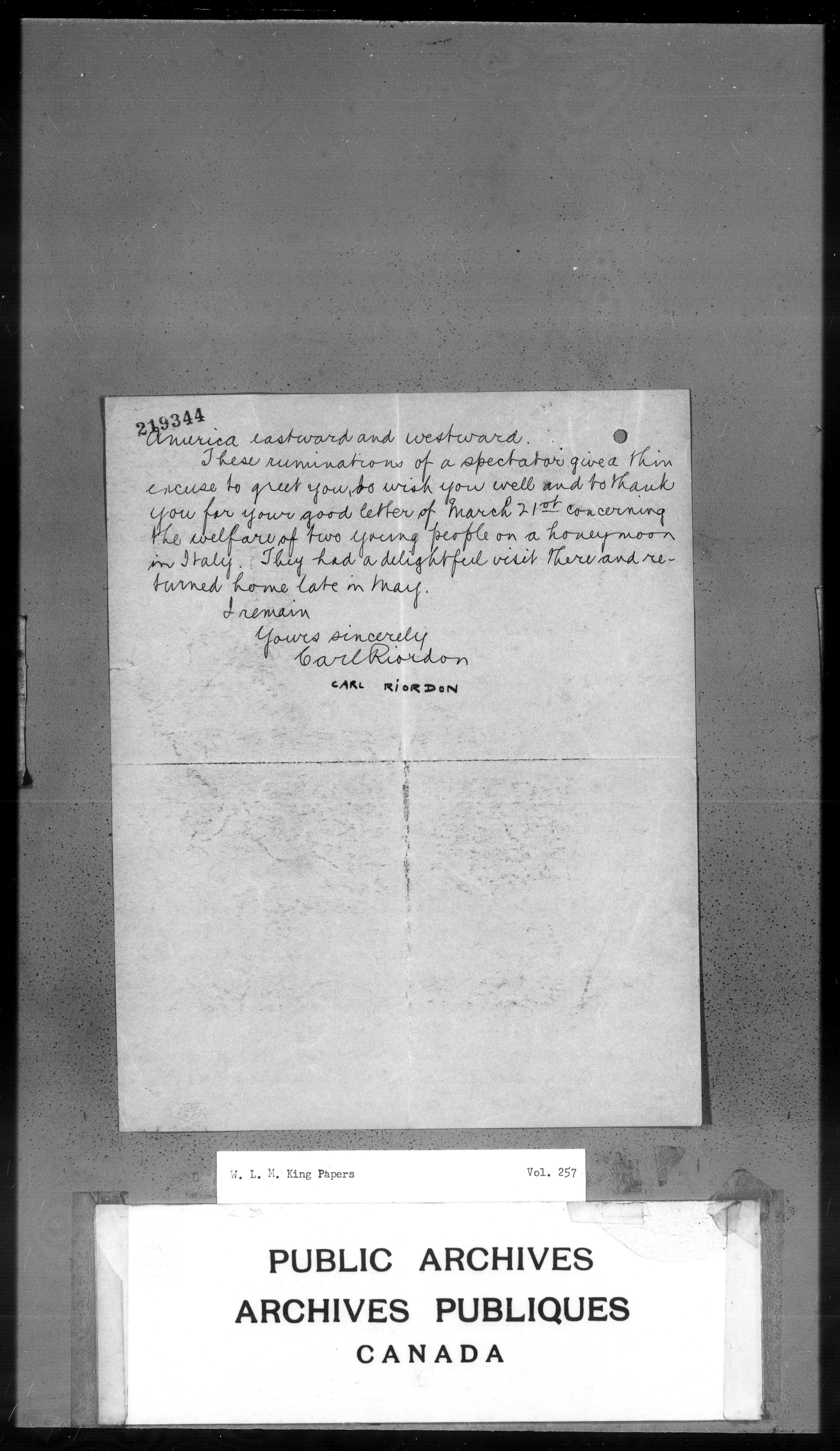 William Lyon Mackenzie King : Primary series correspondence (J1) - 3738