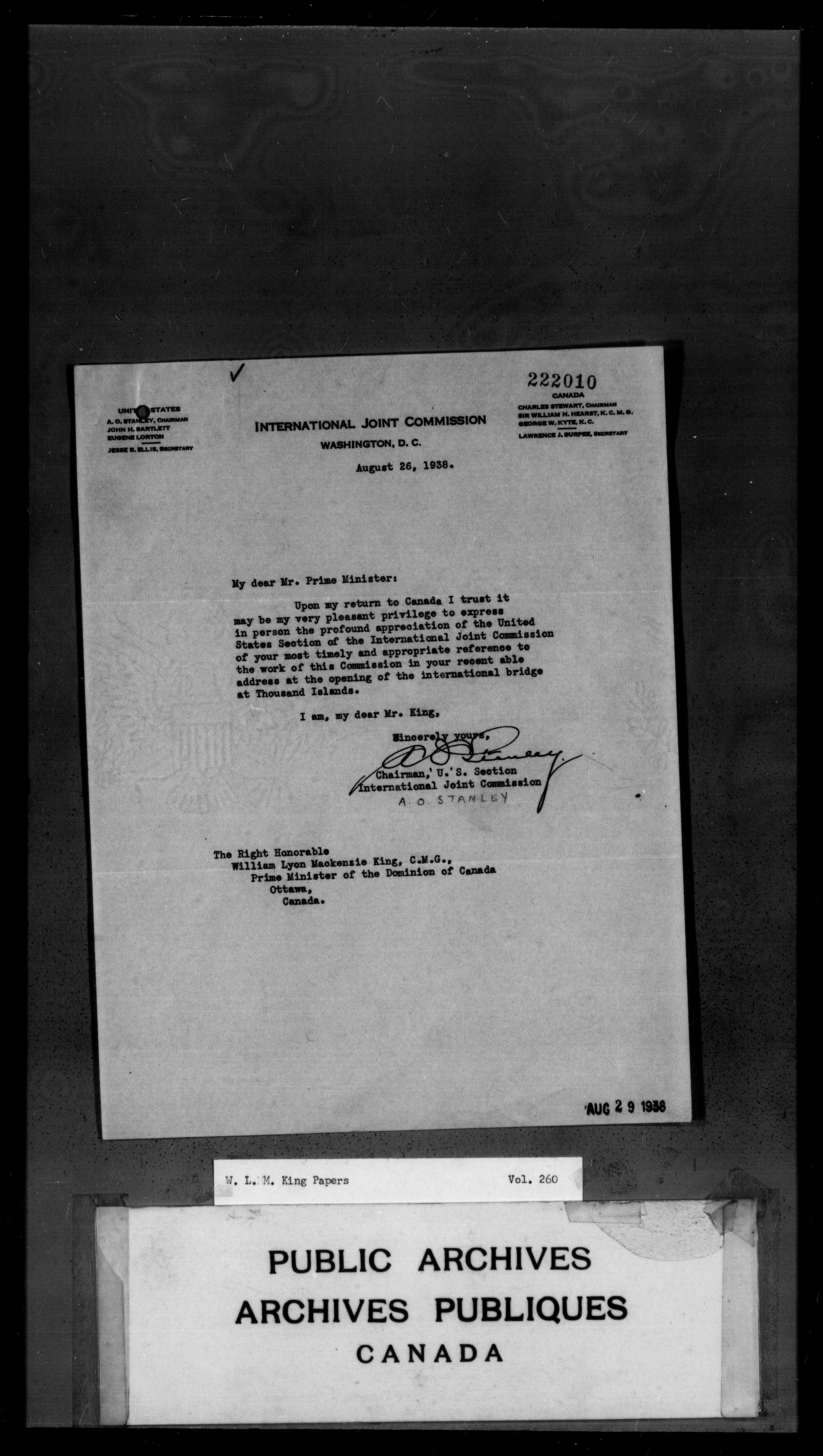 William Lyon Mackenzie King : Primary series correspondence (J1) - 3739