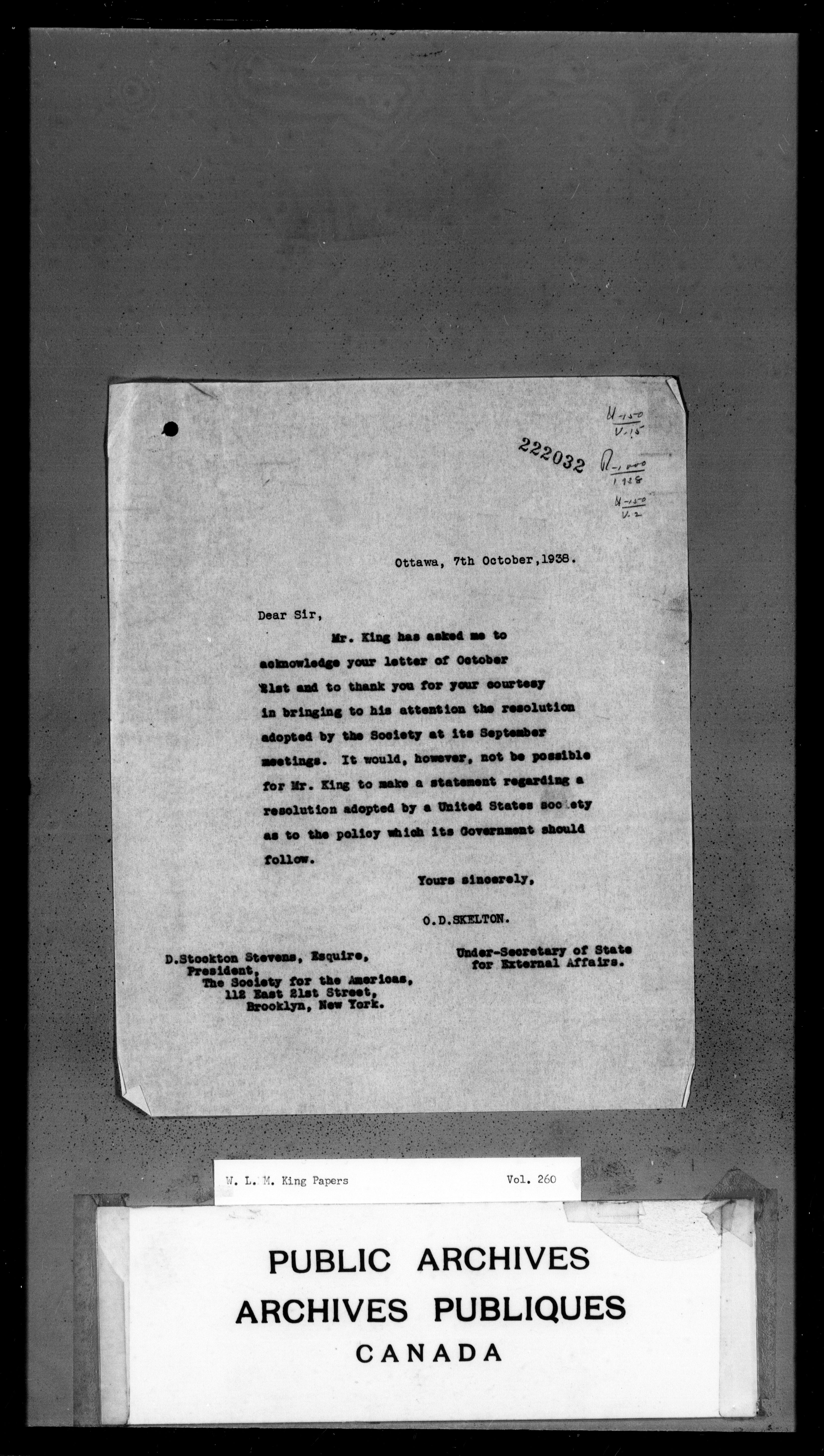 William Lyon Mackenzie King : Primary series correspondence (J1) - 3739